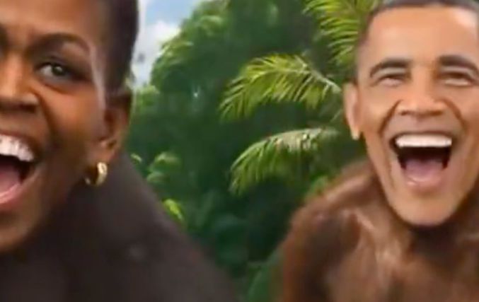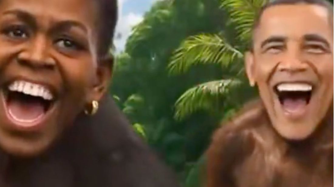 Λίγο πριν από το τέλος της ανάρτησης και για δύο δευτερόλεπτα εμφανίζεται ένα βίντεο μοντάζ των συζύγων Ομπάμα με τα γελαστά πρόσωπά τους πάνω σε σώματα πιθήκων, με φόντο τη ζούγκλα.