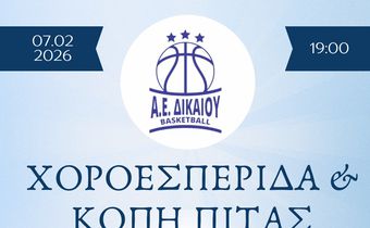 Χοροεσπερίδα και κοπή πίτας απ' την Α.Ε Δικαίου στις 7 Φεβρουαρίου στο «Όνειρο»