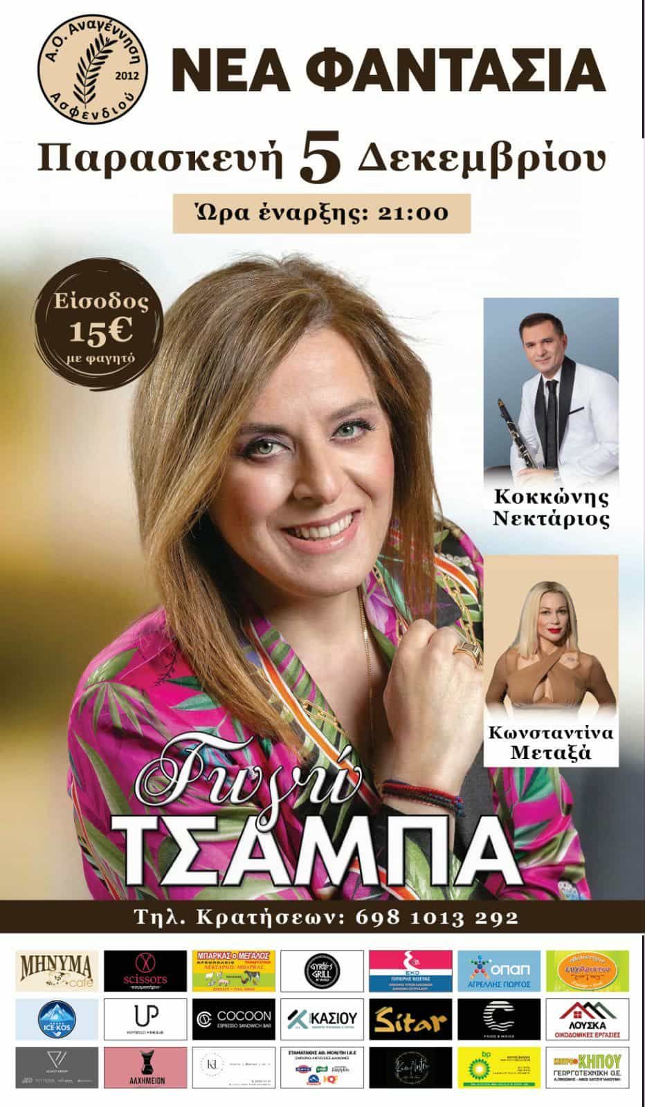 Ο Α.Ο. Αναγέννηση Ασφενδιού σας προσκαλεί σε μία αξέχαστη μουσική βραδιά με την αγαπημένη μας Γωγώ Τσαμπά!