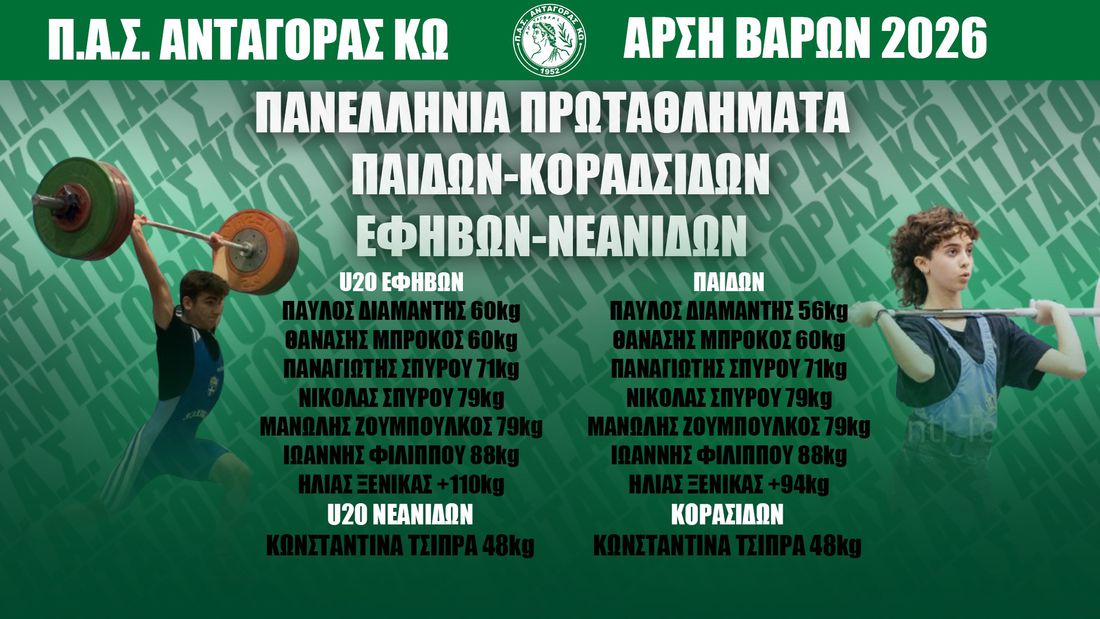 ΕΤΟΙΜΟΣ Ο ΑΝΤΑΓΟΡΑΣ ΓΙΑ ΤΑ ΠΑΝΕΛΛΗΝΙΑ ΠΡΩΤΑΘΛΗΜΑΤΑ ΕΦΗΒΩΝ, ΠΑΙΔΩΝ & ΝΕΑΝΙΔΩΝ, ΚΟΡΑΣΙΔΩΝ 2026