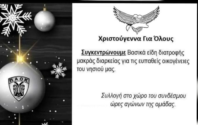 Ο Σύνδεσμος Φιλάθλων ΠΑΟΚ Κω συνεχίζει και φέτος την κοινωνική του δράση, στηρίζοντας έμπρακτα τις οικογένειες του νησιού μας που έχουν ανάγκη.