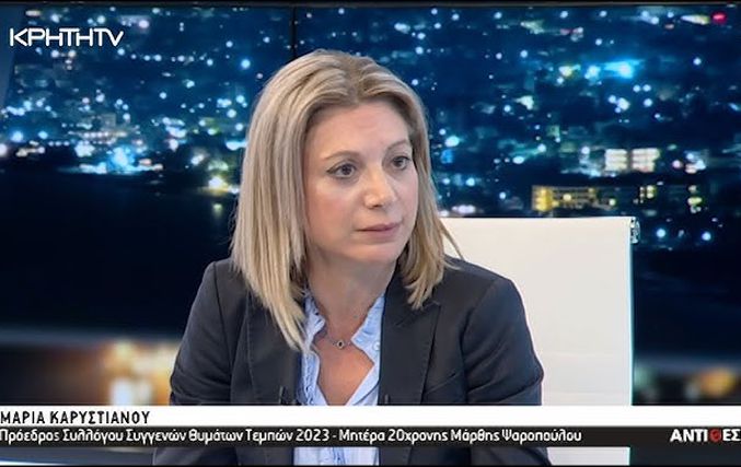 Σε δημόσια τοποθέτηση προχώρησε η Μαρία Καρυστιανού, πρόεδρος του Συλλόγου Θυμάτων και Συγγενών της τραγωδίας των Τεμπών 2023, καταγγέλλοντας αιφνιδιαστικό έλεγχο στα γραφεία του συλλόγου από το ΣΔΟΕ.