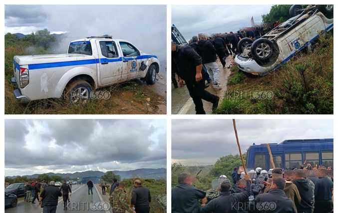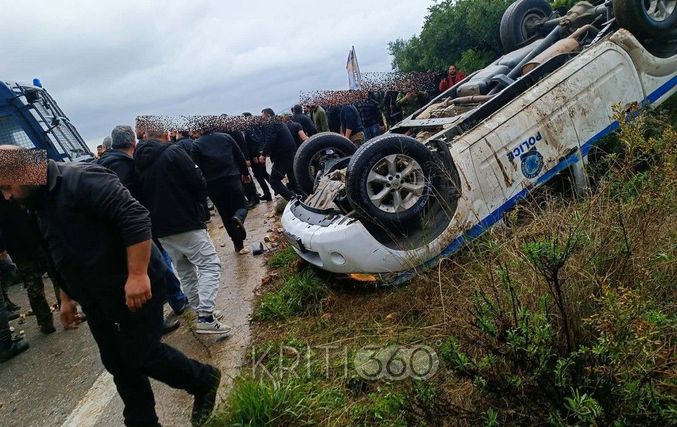 Μάλιστα αναποδογύρισαν και ένα αστυνομικό όχημα.