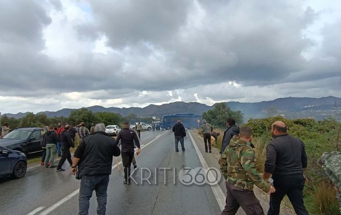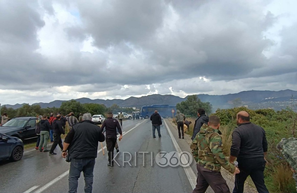 Έπειτα από λίγο η κλούβα των ΜΑΤ απομακρύνθηκε και οι κτηνοτρόφοι κατευθύνονται προς το αεροδρόμιο.