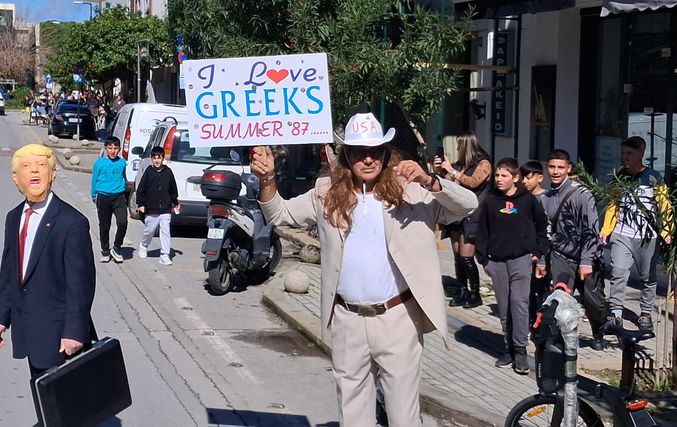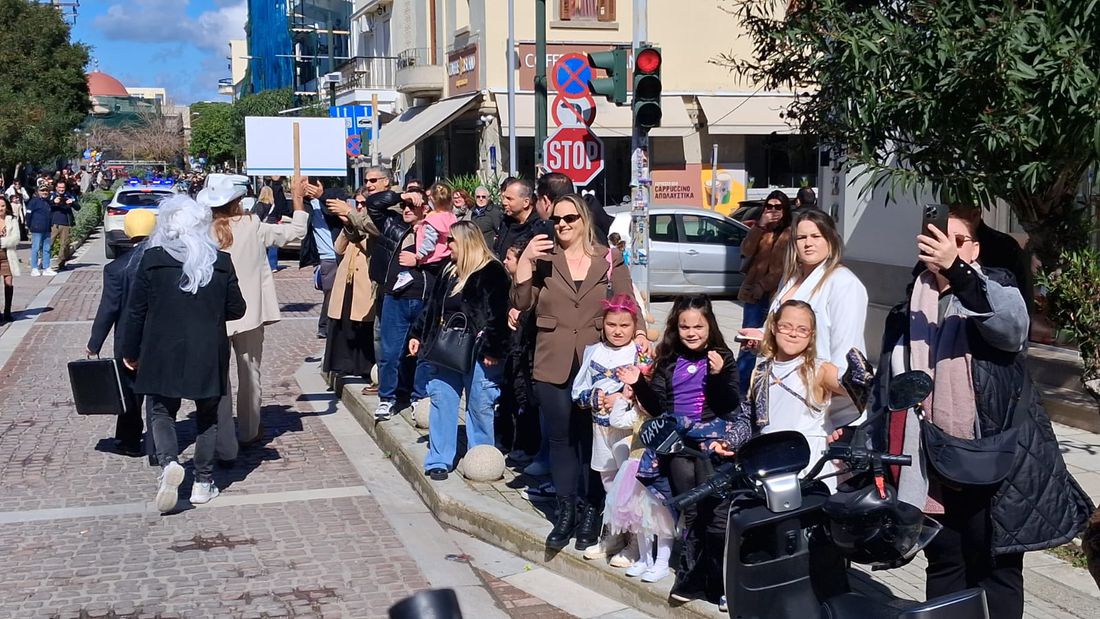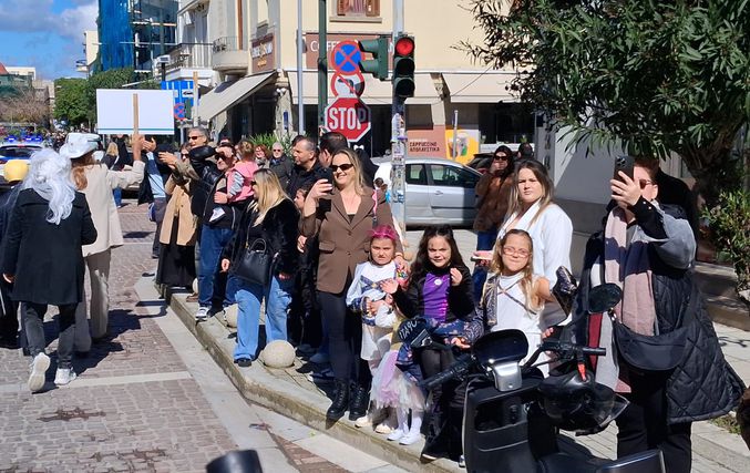 Παιδιά, γονείς και σύλλογοι συμμετείχαν δυναμικά στην παρέλαση, στέλνοντας μήνυμα αισιοδοξίας και ενότητας μέσα από το γέλιο και τη σάτιρα.