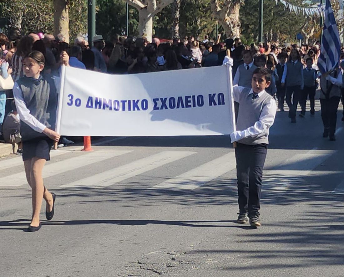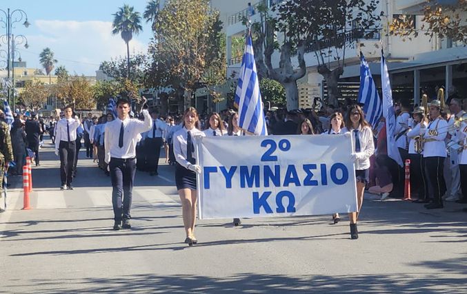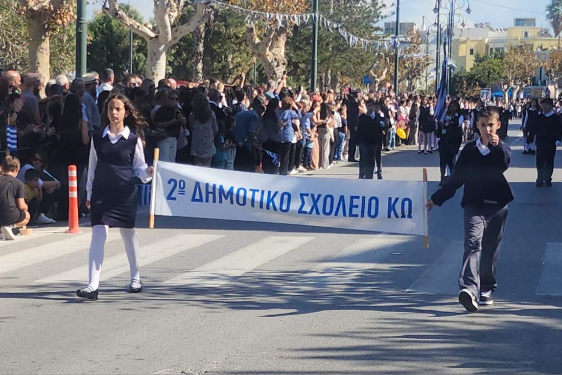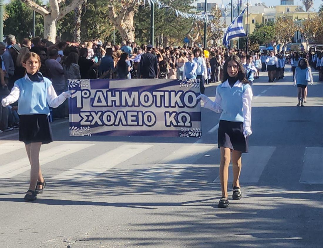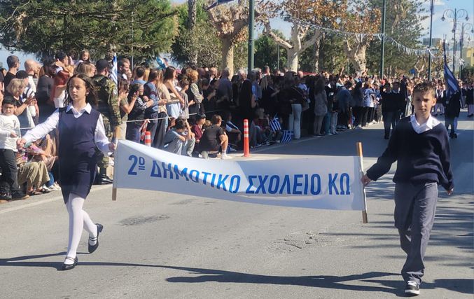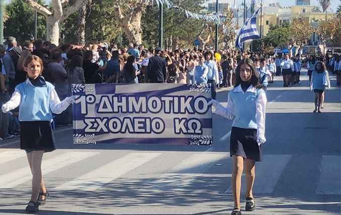 Με λαμπρότητα και σε εορταστικό κλίμα, πραγματοποιήθηκε στην πόλη της Κω, η καθιερωμένη παρέλαση για την εθνική επέτειο της 28ης Οκτωβρίου.