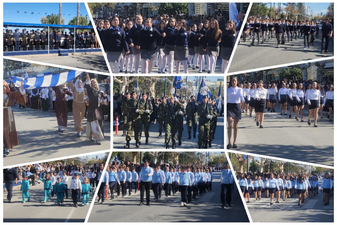 Εκατοντάδες συμπολίτες μας παρακολούθησαν και χειροκρότησαν θερμά τους μαθητές, τα στρατιωτικά τμήματα, τους Πολιτιστικούς Συλλόγους και τα Σώματα Ασφαλείας που συμμετείχαν.