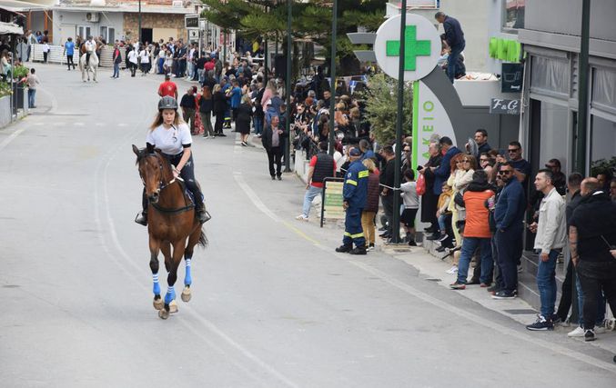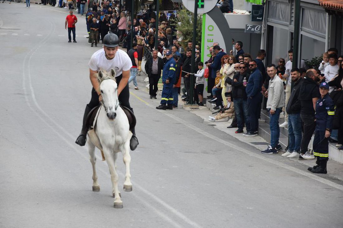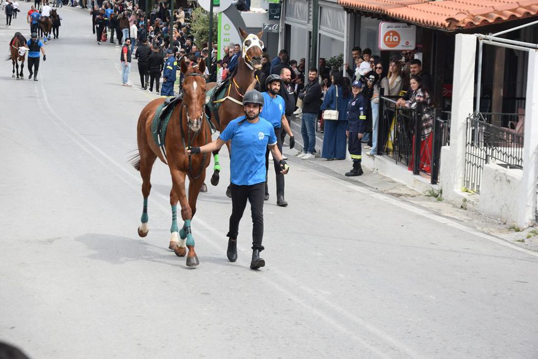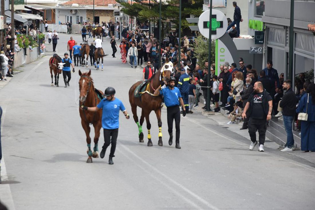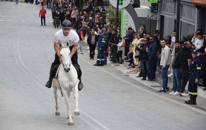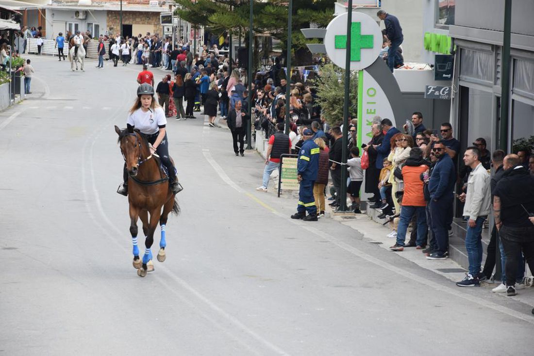 Στη συνέχεια, το ενδιαφέρον κορυφώθηκε με το εντυπωσιακό και ξεχωριστό έθιμο της παρέλασης των αλόγων, που κάθε χρόνο προσελκύει το ενδιαφέρον μικρών και μεγάλων.