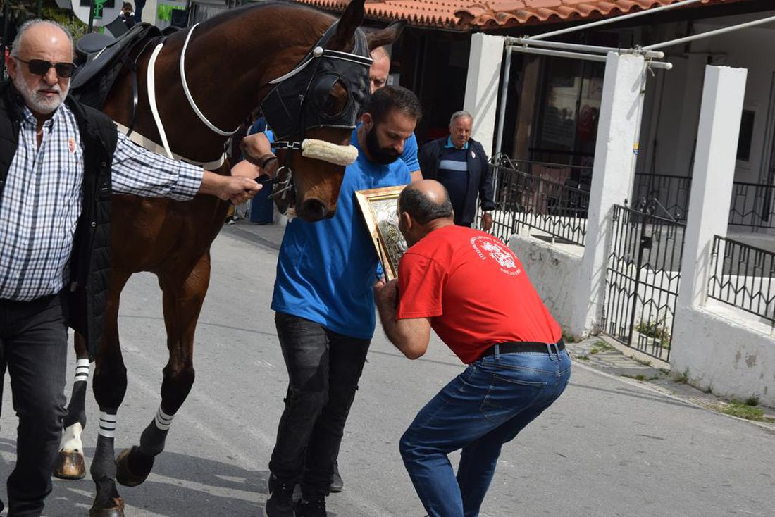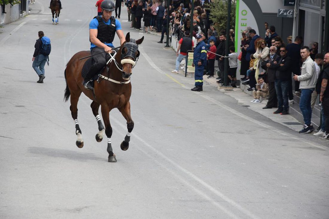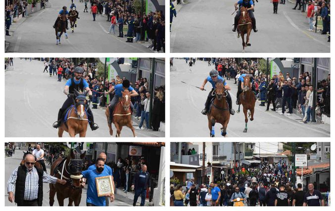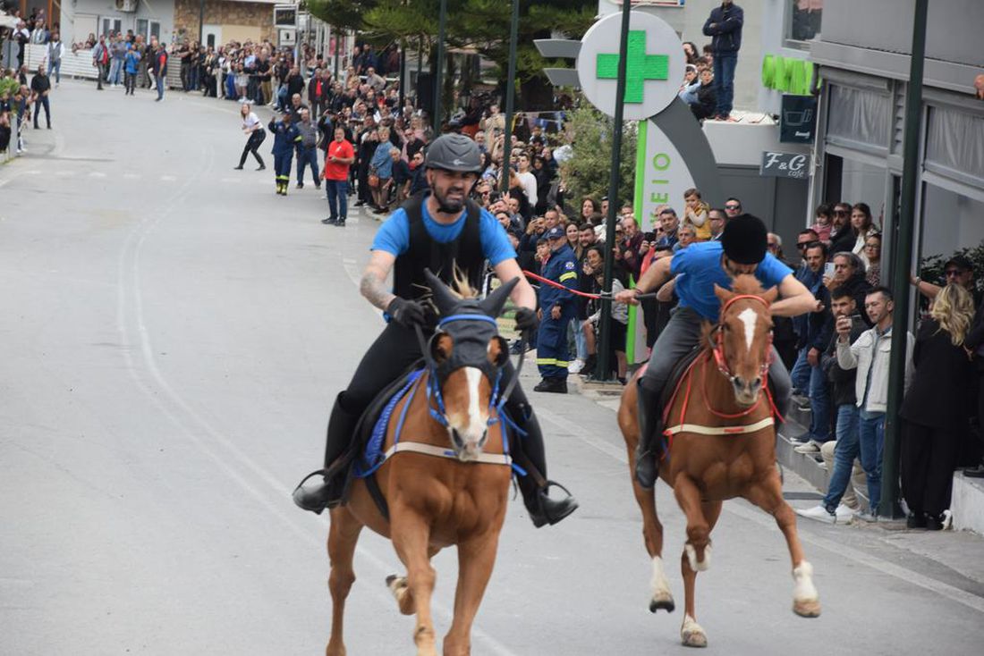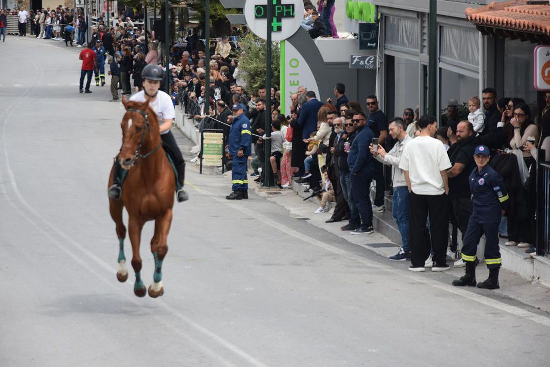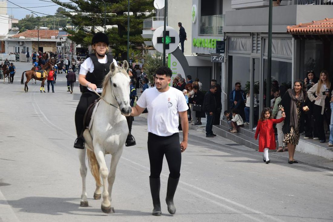 Στη συνέχεια, το ενδιαφέρον κορυφώθηκε με το εντυπωσιακό και ξεχωριστό έθιμο της παρέλασης των αλόγων, που κάθε χρόνο προσελκύει το ενδιαφέρον μικρών και μεγάλων.