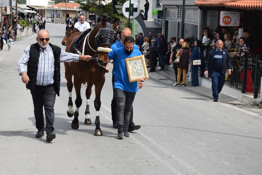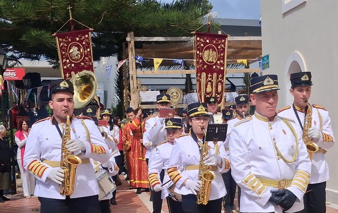 Αμέσως μετά τη Θεία Λειτουργία, ακολούθησε η περιφορά της ιερής εικόνας στον προαύλιο χώρο της εκκλησίας, υπό τους ήχους της Φιλαρμονικής του Δήμου Κω, η οποία προσέδωσε έναν ιδιαίτερα πανηγυρικό τόνο στην τελετή. Η ατμόσφαιρα ήταν κατανυκτική αλλά και εορταστική, με τους παρευρισκόμενους να συμμετέχουν ενεργά σε κάθε στιγμή.