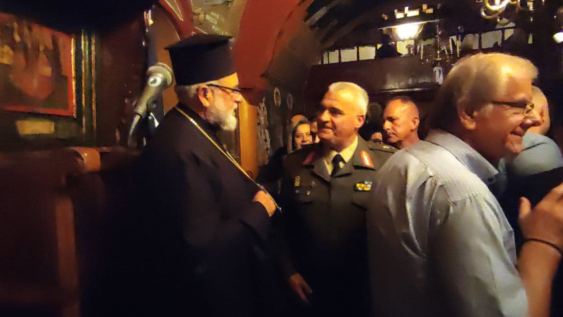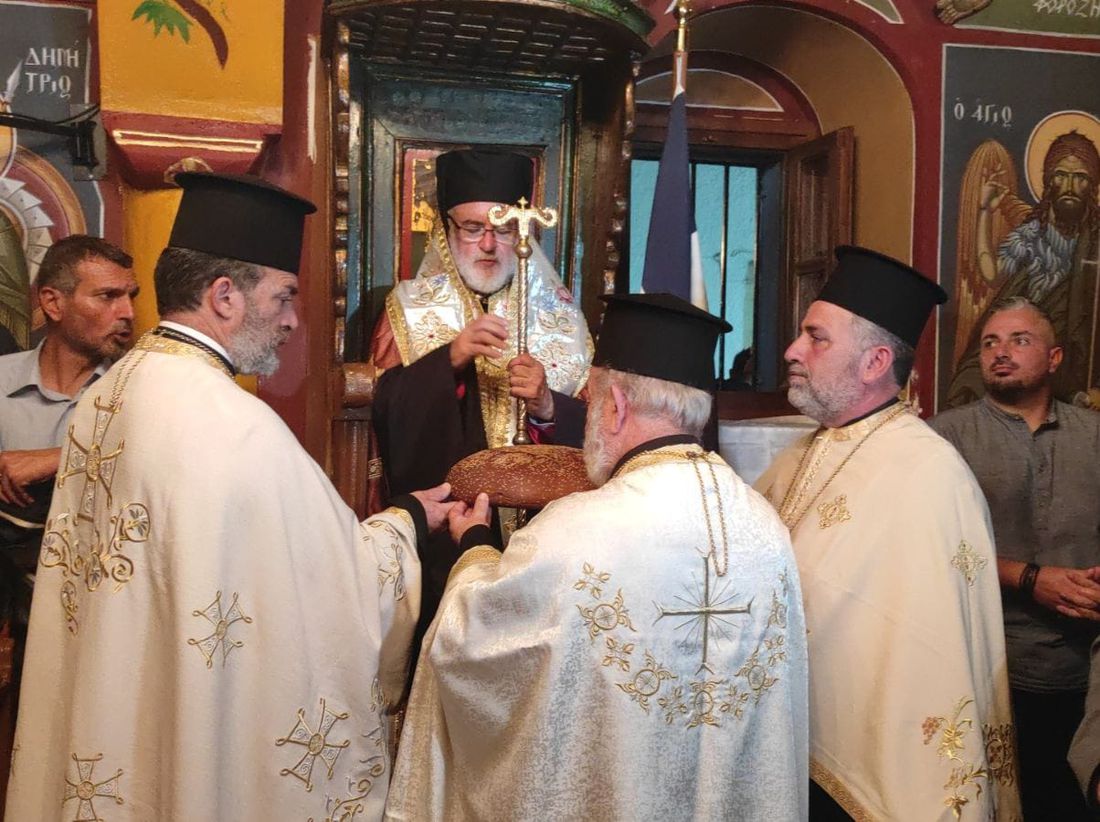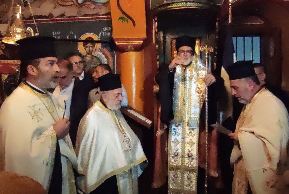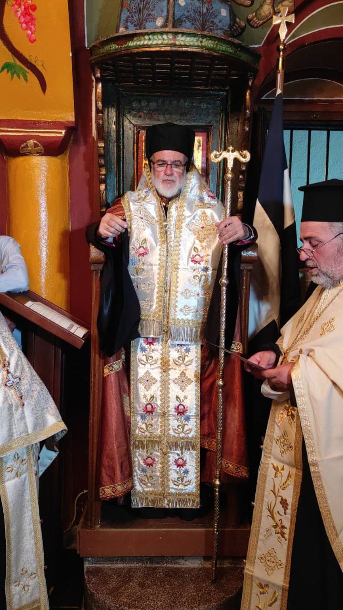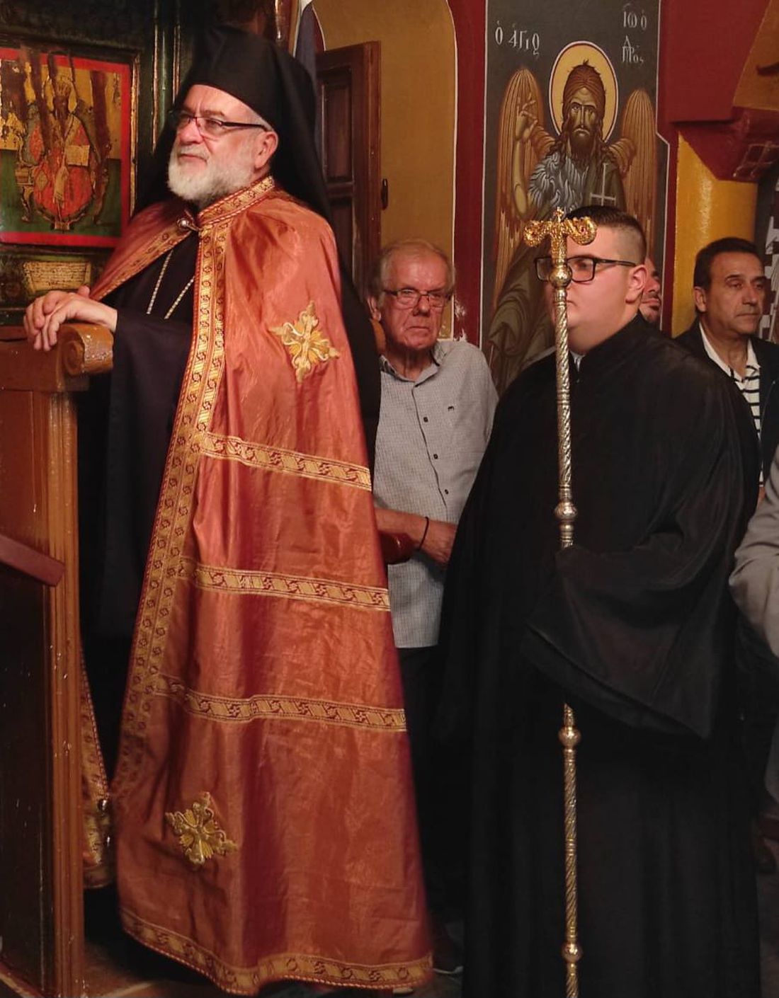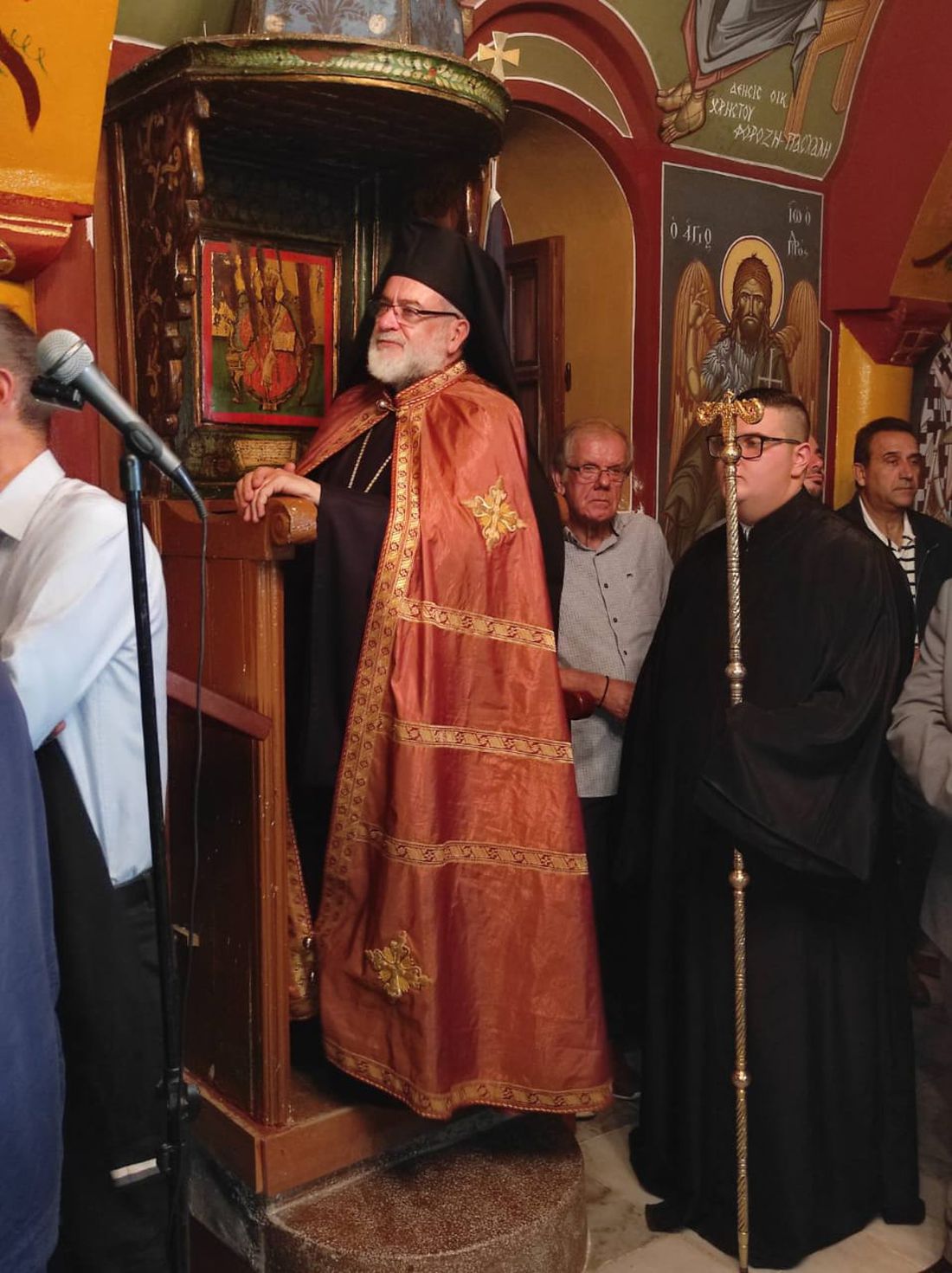 Χοροστατούντος, όπως κάθε χρόνο του Σεβαμιωτάτου Μητροπολίτου Κώου και Νισύρου κ. Ναθαναήλ, πλαισιωμένου από τον Γενικό Αρχιερατικό της Ιεράς Μητροπόλεως Πρωτοπρεσβύτερο π. Ιωάννη Διακοπαναγιώτη, και τους Ιερείς, π. Σακελλάριο Ζουλουφό μέχρι πέρσι υπεύθυνου της ενορίας, π. Αναστάσιο Τσουκνιά νέου υπεύθυνου της ενορίας, π. Ιωάννη Σταυρόπουλο και π. Ευτύχιο Παπαγεωργίου.