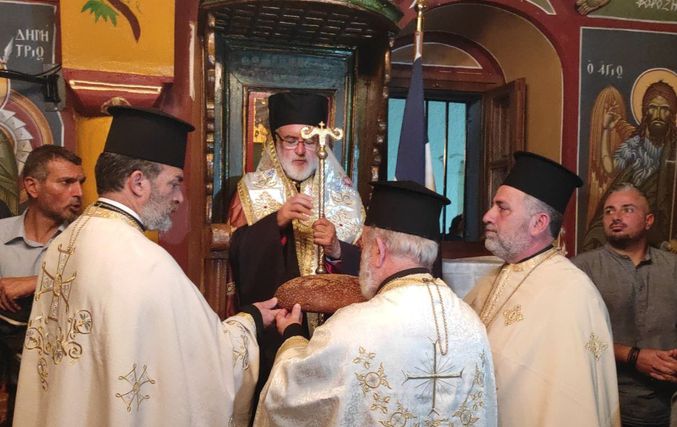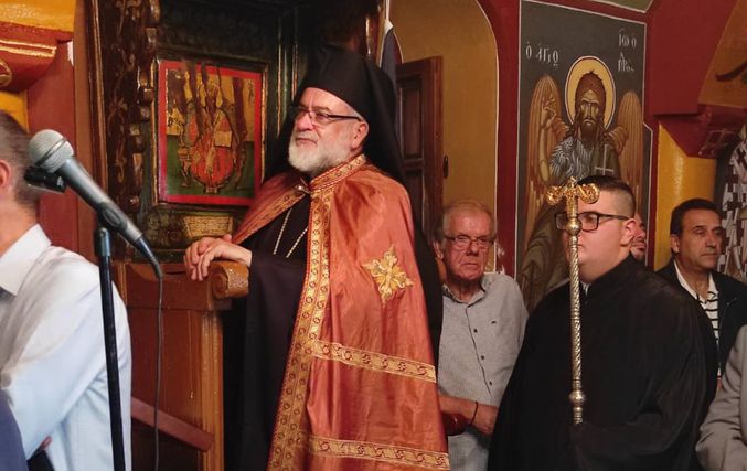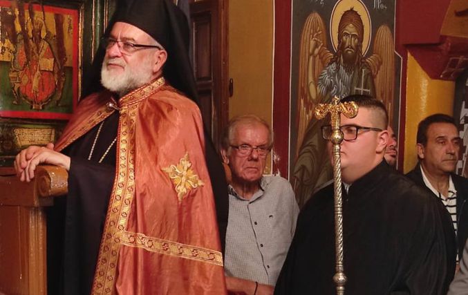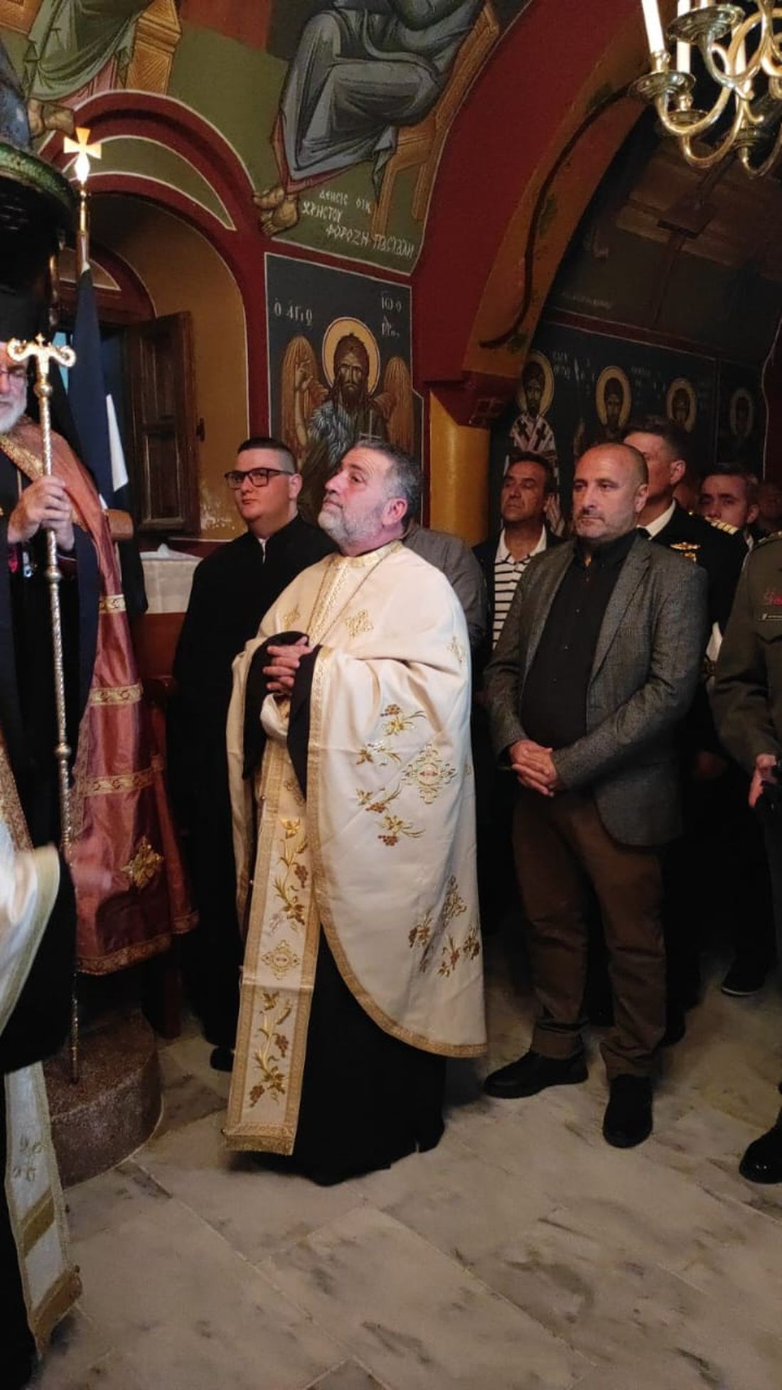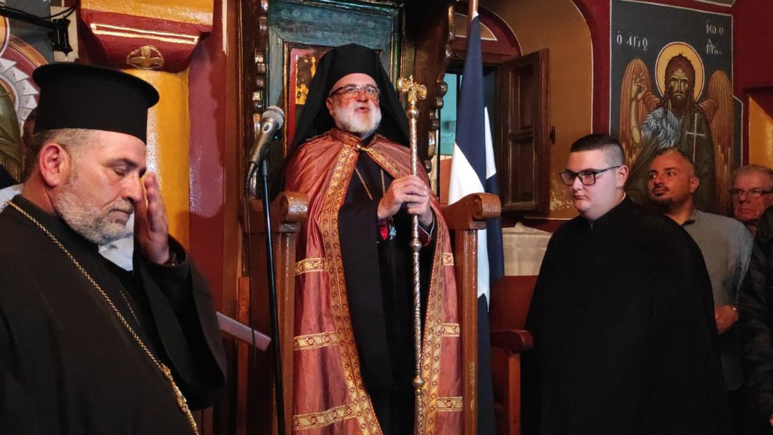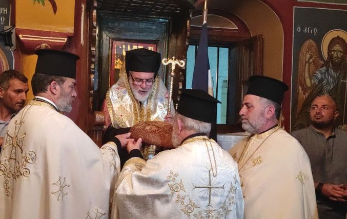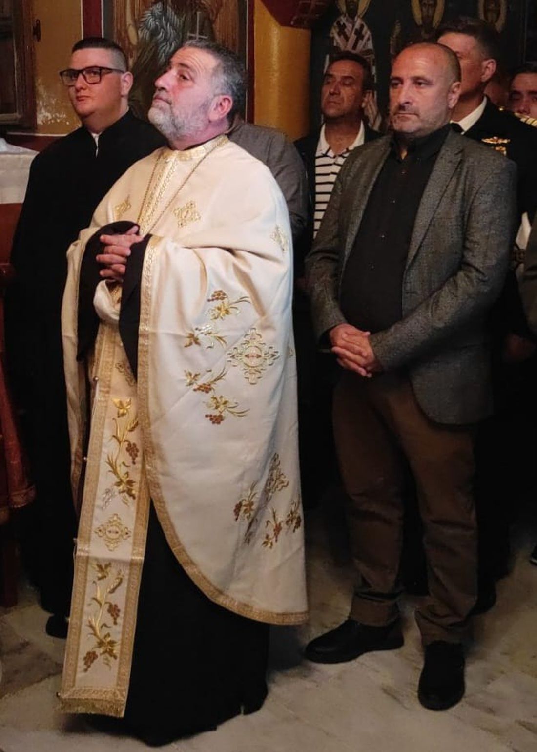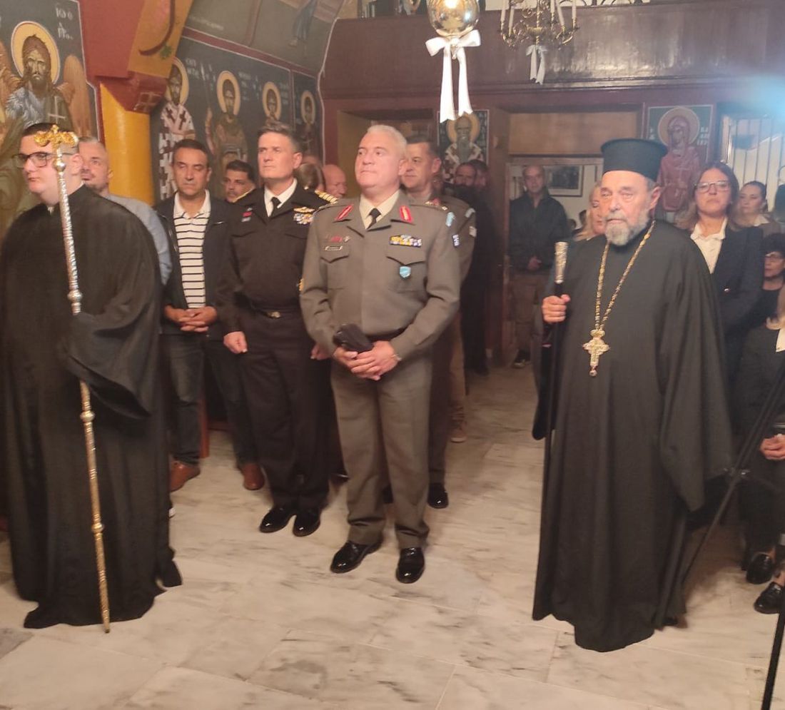 Χοροστατούντος, όπως κάθε χρόνο του Σεβαμιωτάτου Μητροπολίτου Κώου και Νισύρου κ. Ναθαναήλ, πλαισιωμένου από τον Γενικό Αρχιερατικό της Ιεράς Μητροπόλεως Πρωτοπρεσβύτερο π. Ιωάννη Διακοπαναγιώτη, και τους Ιερείς, π. Σακελλάριο Ζουλουφό μέχρι πέρσι υπεύθυνου της ενορίας, π. Αναστάσιο Τσουκνιά νέου υπεύθυνου της ενορίας, π. Ιωάννη Σταυρόπουλο και π. Ευτύχιο Παπαγεωργίου.