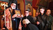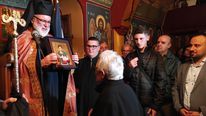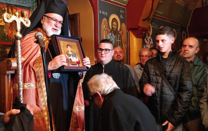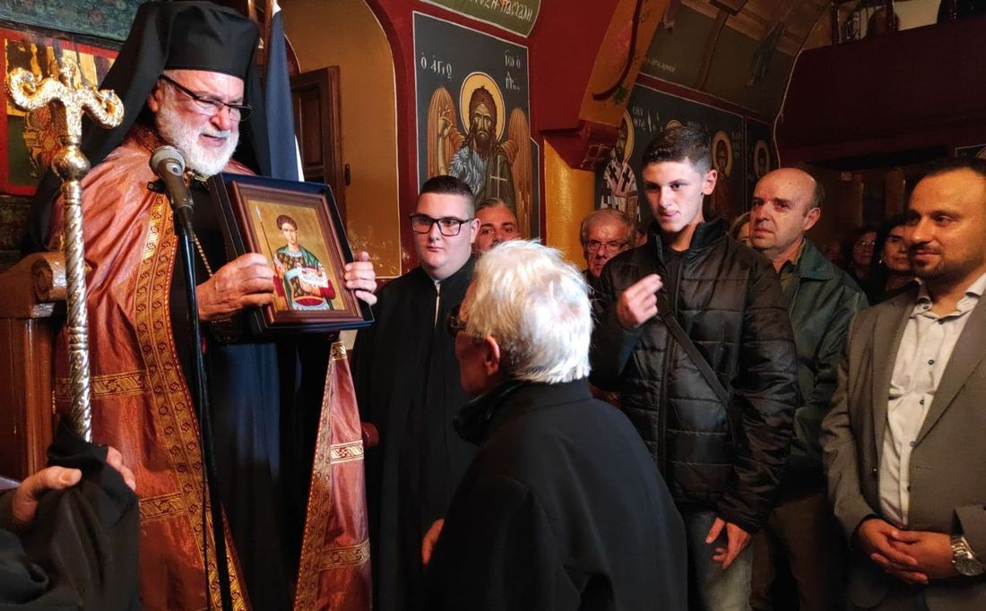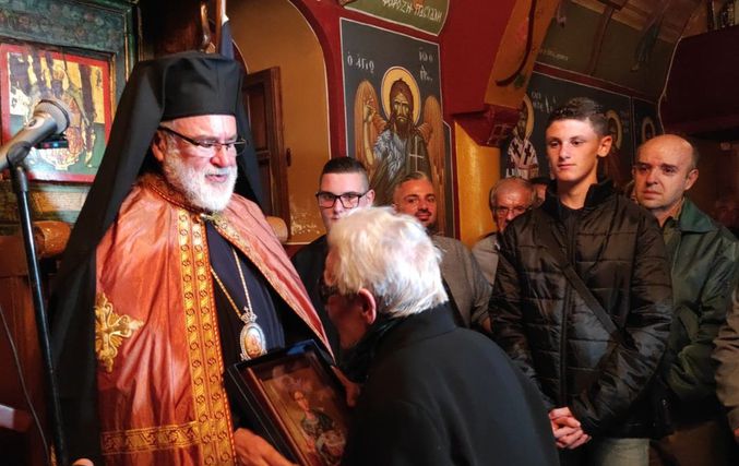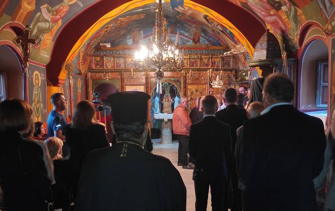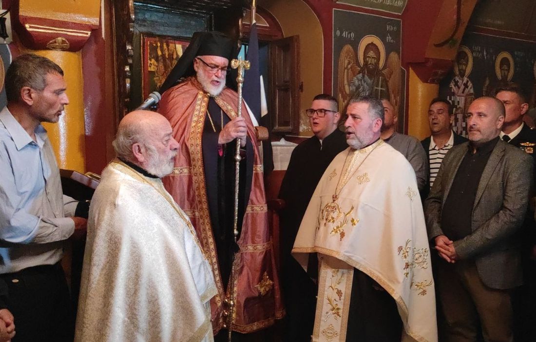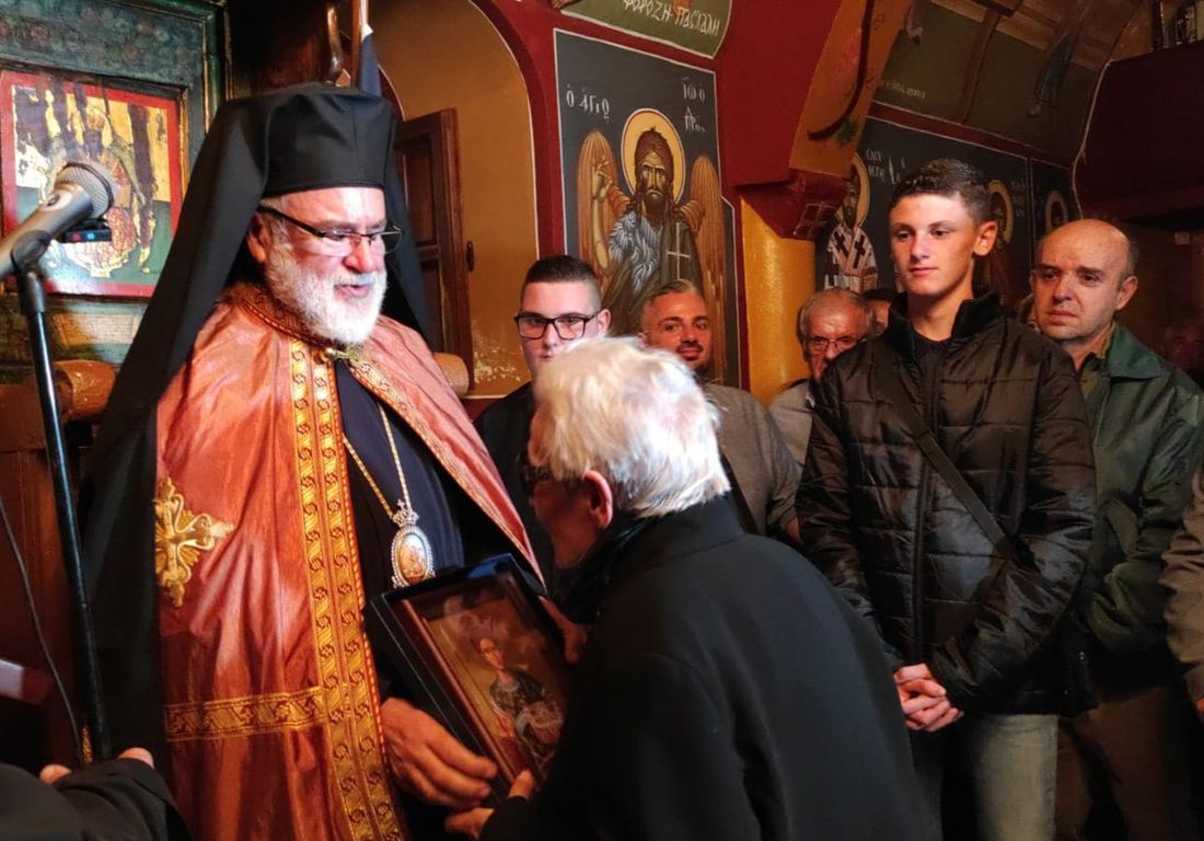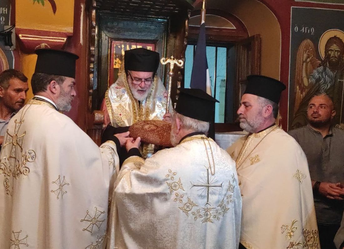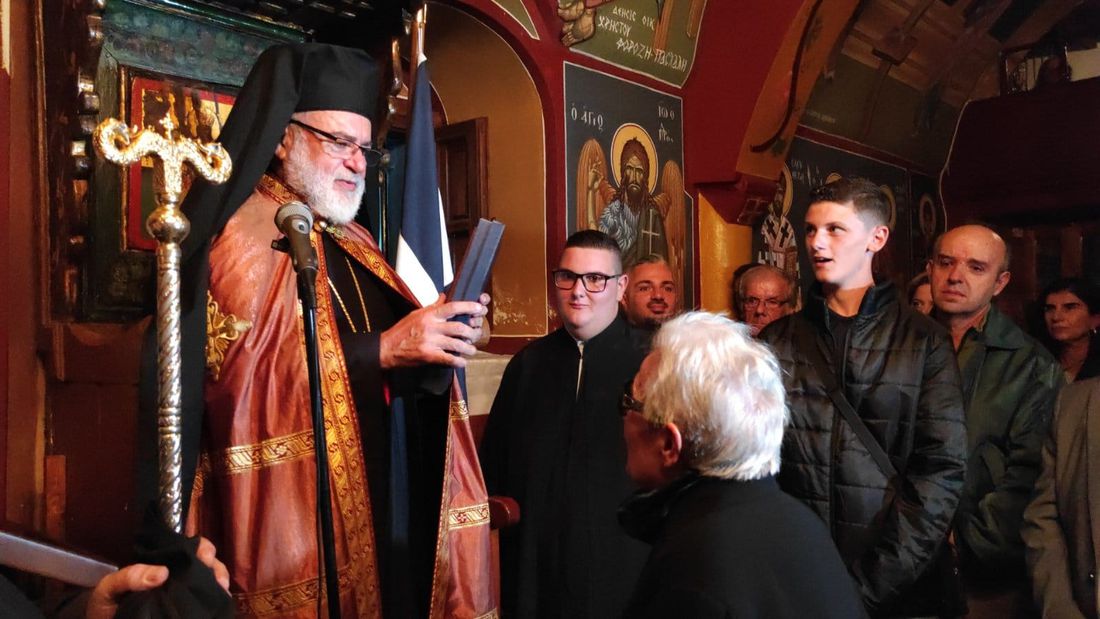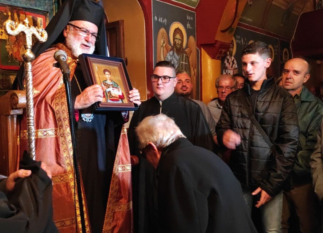 Χοροστατούντος, όπως κάθε χρόνο του Σεβαμιωτάτου Μητροπολίτου Κώου και Νισύρου κ. Ναθαναήλ, πλαισιωμένου από τον Γενικό Αρχιερατικό της Ιεράς Μητροπόλεως Πρωτοπρεσβύτερο π. Ιωάννη Διακοπαναγιώτη, και τους Ιερείς, π. Σακελλάριο Ζουλουφό μέχρι πέρσι υπεύθυνου της ενορίας, π. Αναστάσιο Τσουκνιά νέου υπεύθυνου της ενορίας, π. Ιωάννη Σταυρόπουλο και π. Ευτύχιο Παπαγεωργίου.