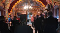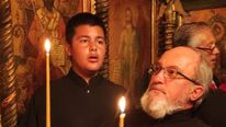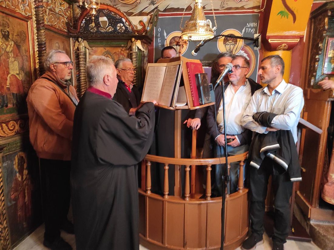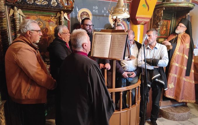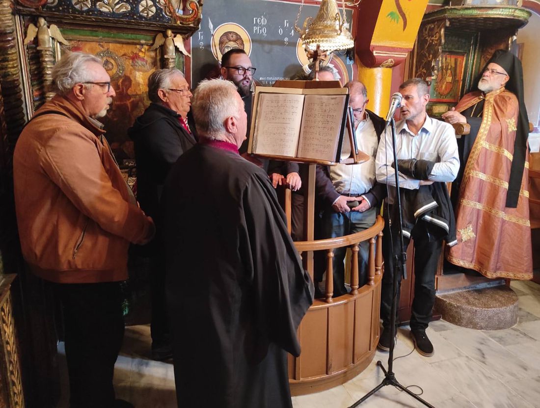 Τους ύμνους απέδωσε χορός ιεροψαλτών υπό τον εορτάζοντα χοράρχη Δημήτρη Τανάγρα και τον επίσης εορτάζοντα Δημήτρη Διακονικολή, Γιάννης Κουτσουράης, Γιώργος Σανιδάς, Βασίλης Παπαδόπουλος, Θέμος Κουκούλας, Παναγιώτης Βασιλείου και Γιάννης Κιάρης.