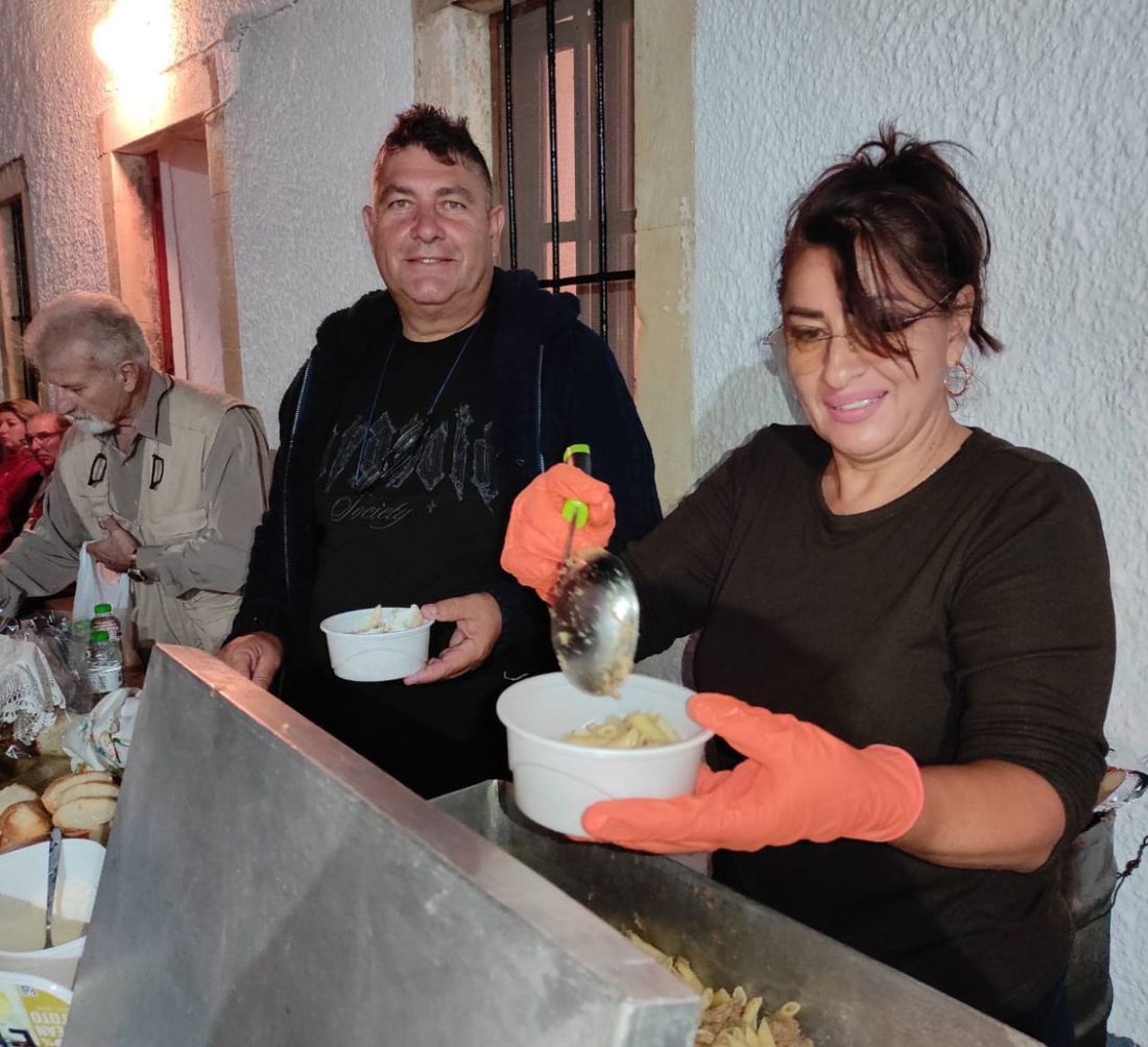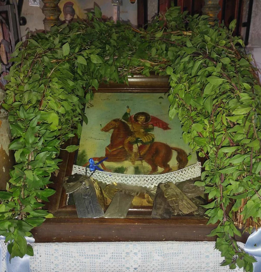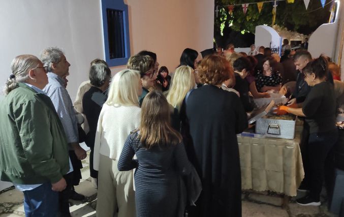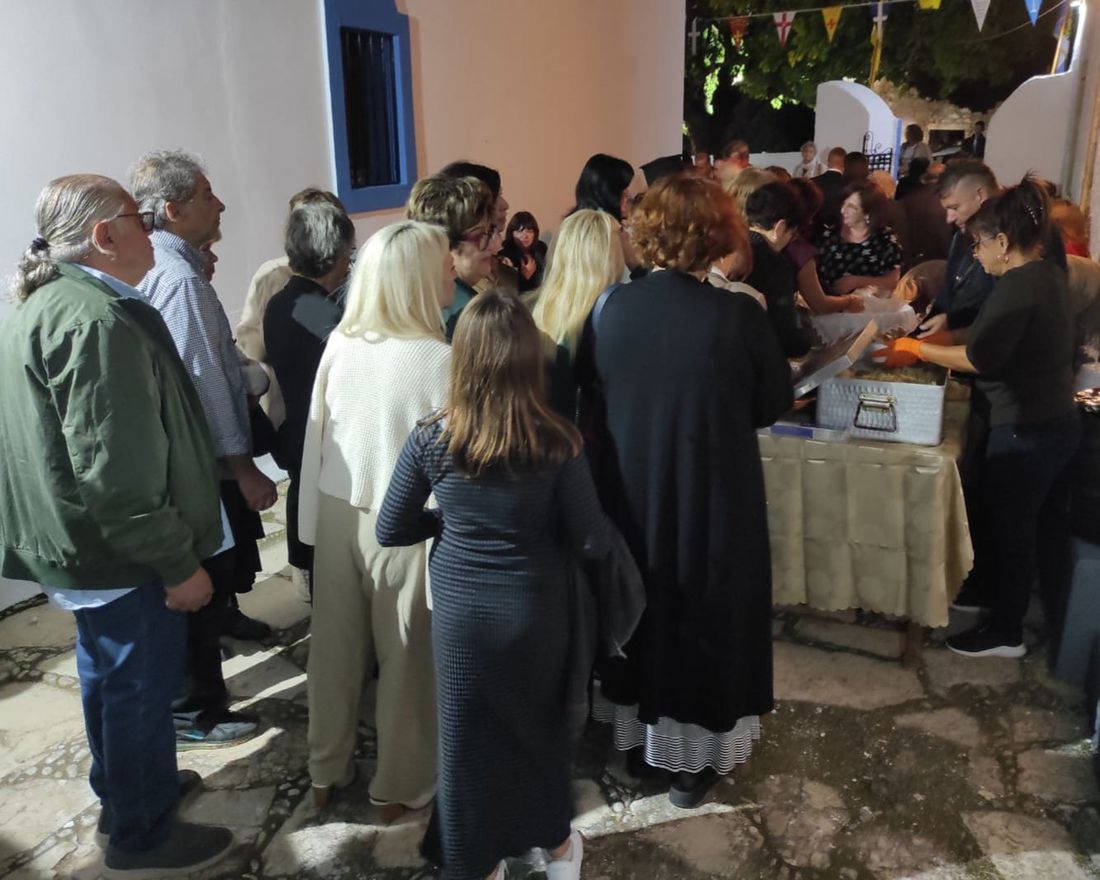 Μετά το πέρας του εσπερινού ο εορτάζων κ. Δημήτριος Παρβαντώνης πρόσφερε μακαρόνια με κρέας σε όλους τους προσκυνητές και η ενοριακή αδελφότητα γλυκίσματα.