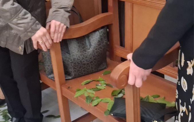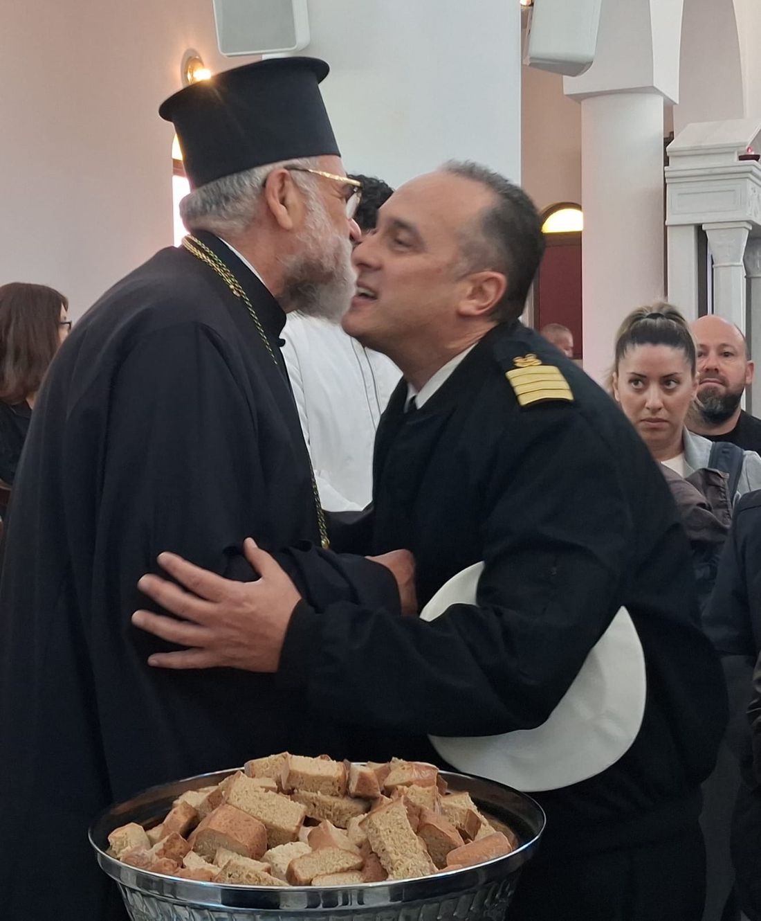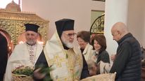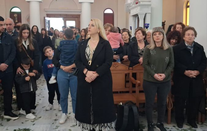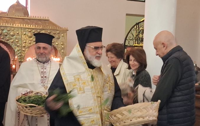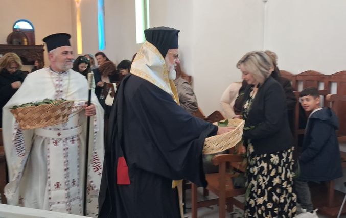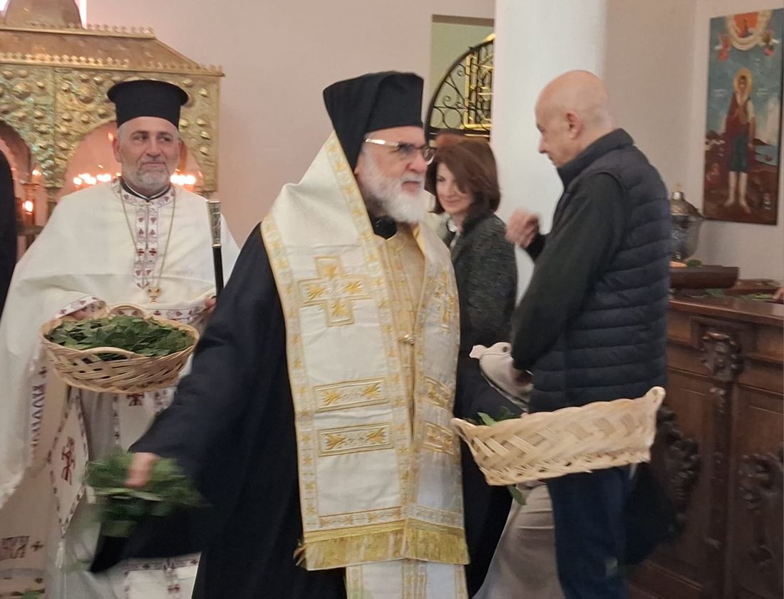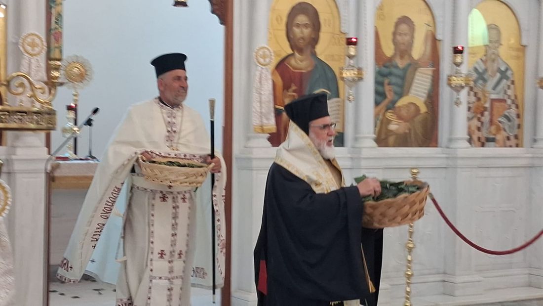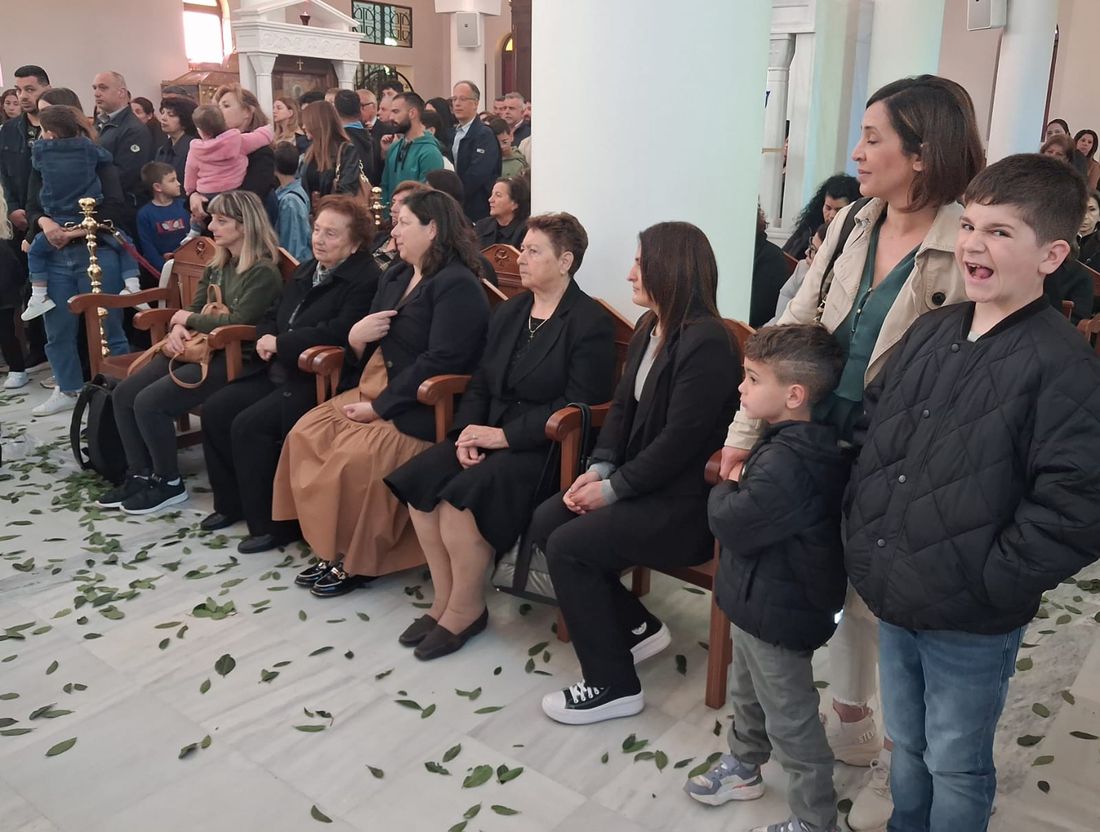 Ταυτόχρονα, ο Σεβασμιώτατος Μητροπολίτης έραινε τους πιστούς με φύλλα δάφνης, μια πράξη βαθιά συμβολική, που παραπέμπει στη νίκη, την ελπίδα και την αναγέννηση. Τα φύλλα δάφνης, σκορπισμένα στον ναό, ενίσχυαν το μήνυμα της χαράς και της λύτρωσης, μεταδίδοντας στους παρευρισκόμενους το αίσθημα της θείας ευλογίας.