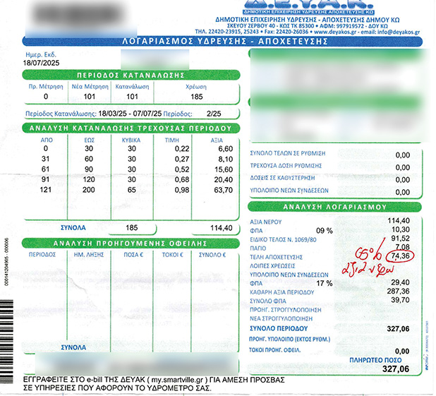 Καταγγελία από κάτοικο Αντιμάχειας για εξαπάτηση στους λογαριασμούς του νερού!