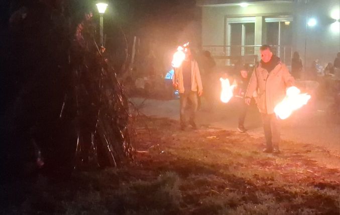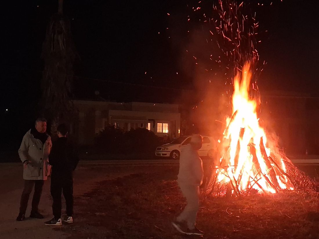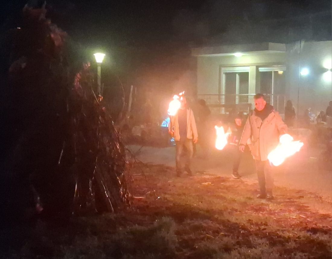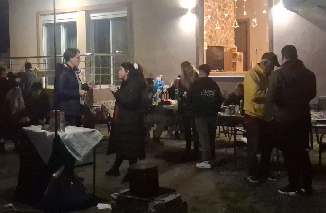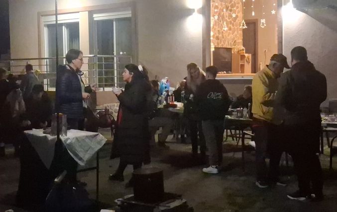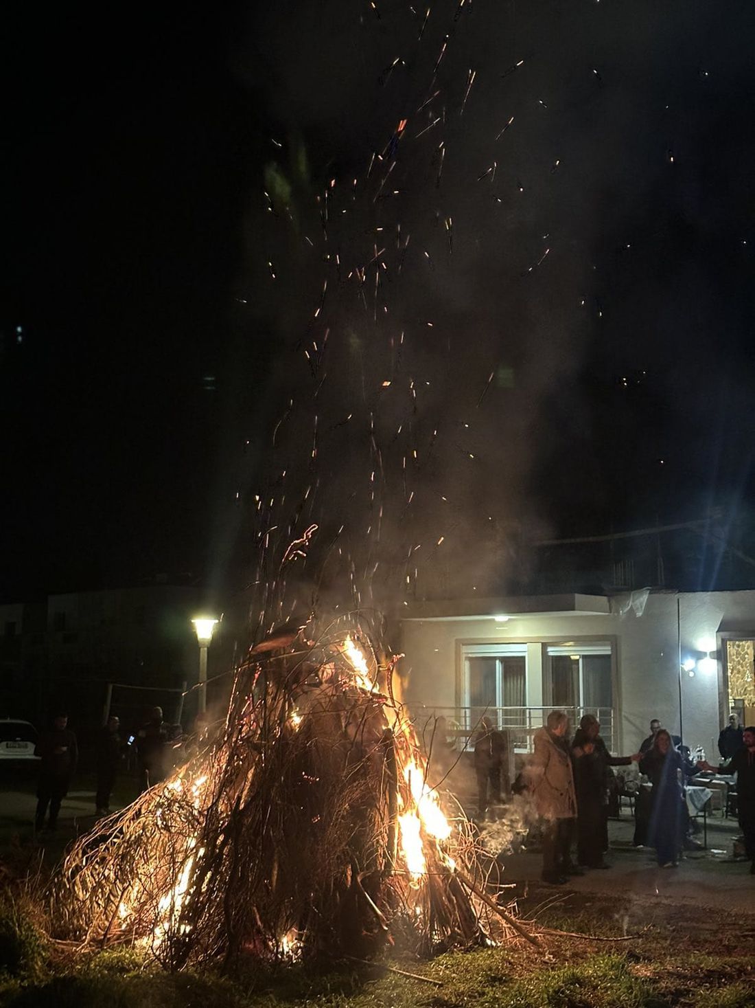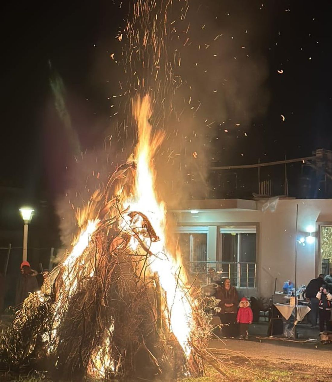 Όπως προστάζει η παράδοση, γύρω από κάθε φωτιά οι παρευρισκόμενοι μοιράζονται γλυκά και παραδοσιακά εδέσματα, όπως φασολάδα, πιπεριές και άλλα τοπικά φαγητά, συνοδευόμενα από άφθονο κρασί. Η ατμόσφαιρα γεμίζει από τους ήχους της παραδοσιακής μουσικής της Φλώρινας, ενώ ο χορός και το γλέντι κρατούν μέχρι αργά, μεταφέροντας το πνεύμα των Χριστουγέννων και τη ζεστασιά της πατρίδας, ακόμα και μακριά από αυτήν.