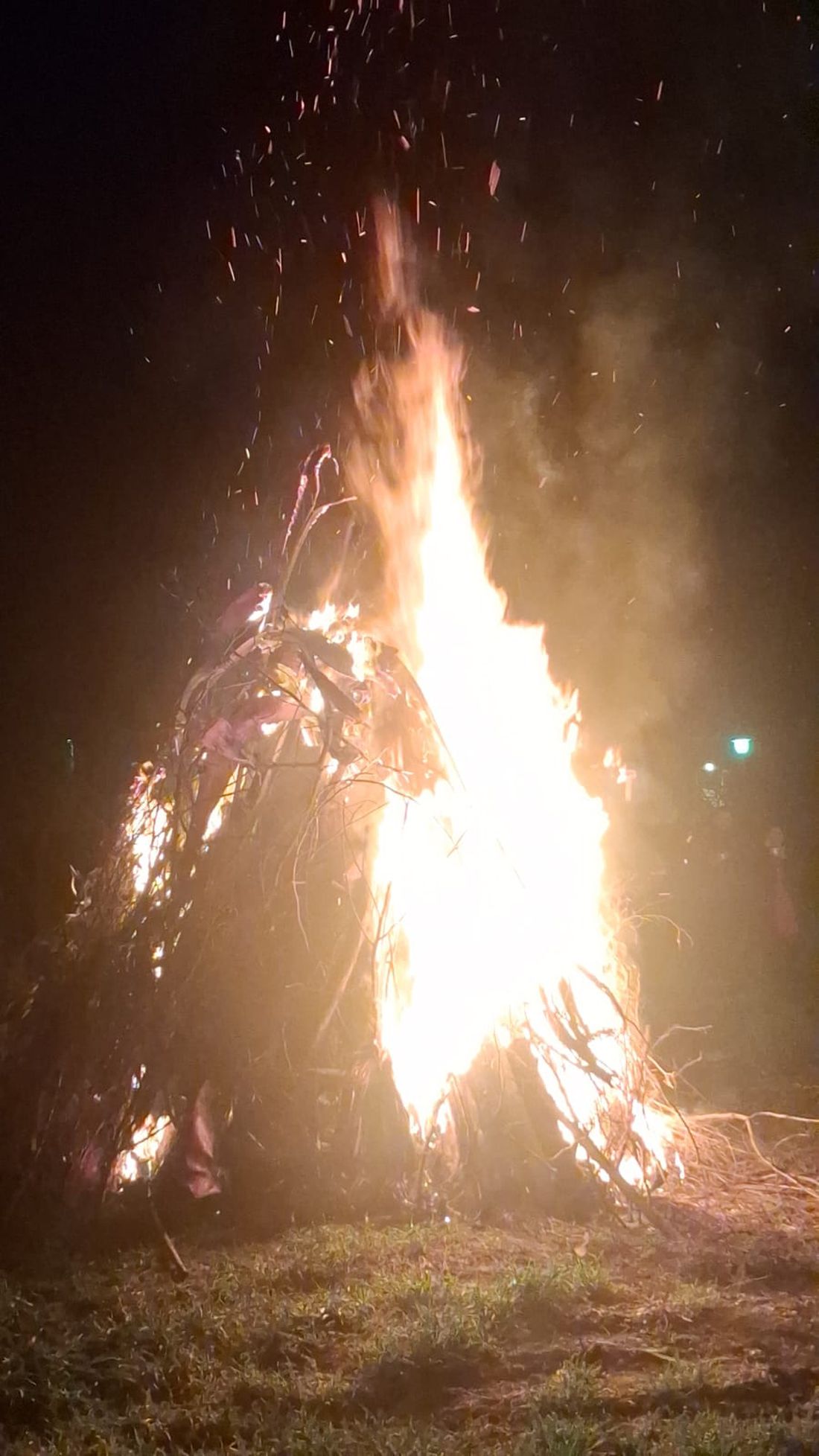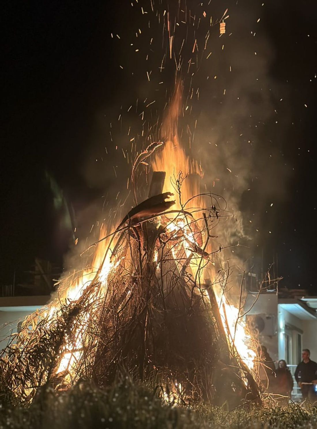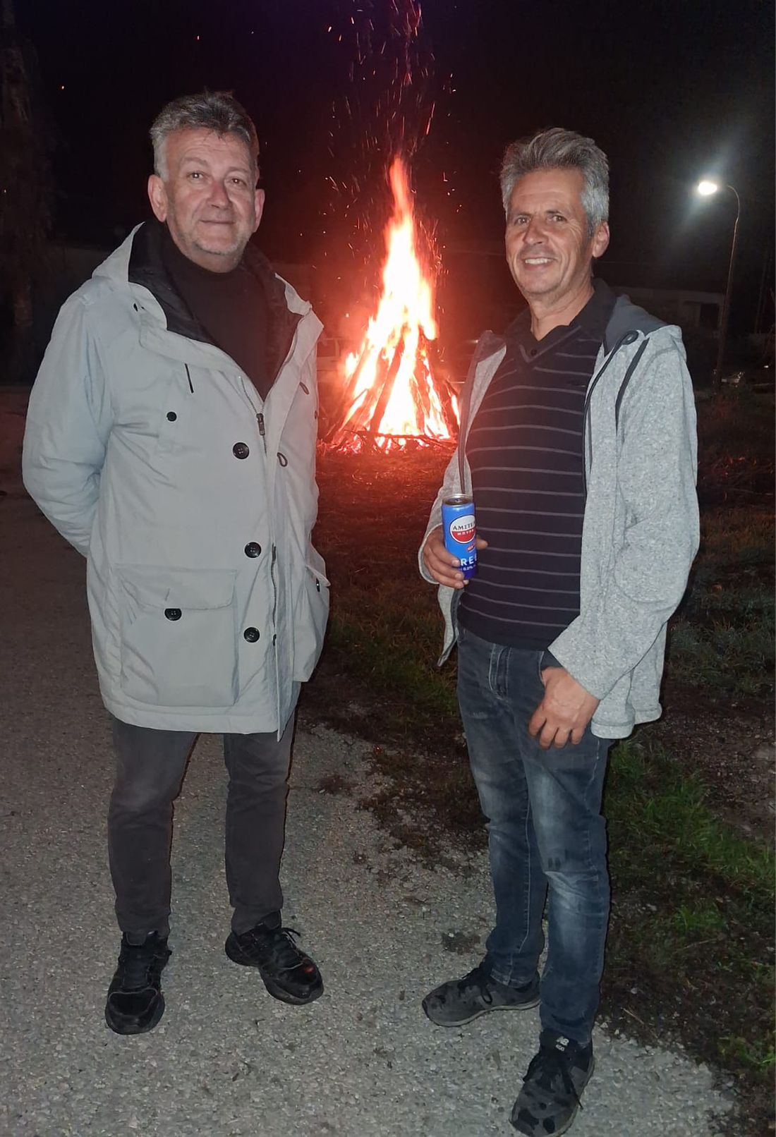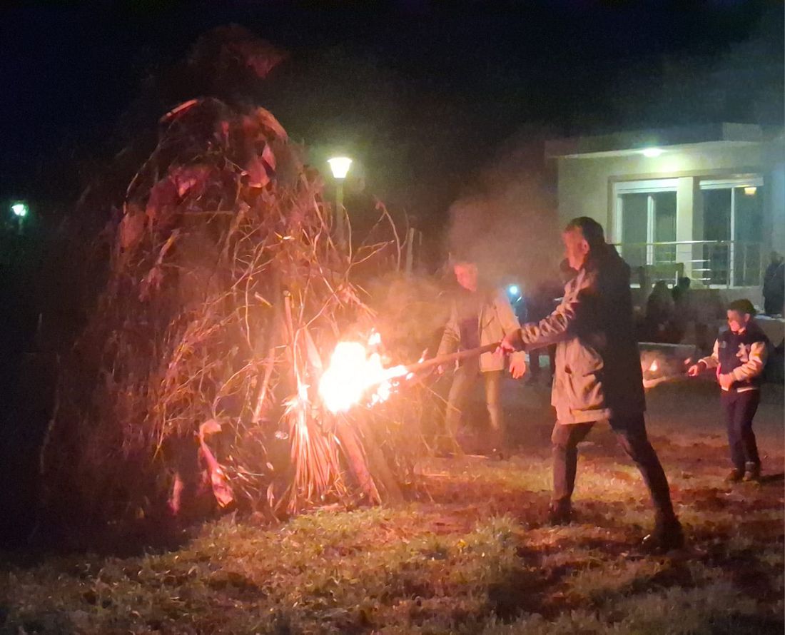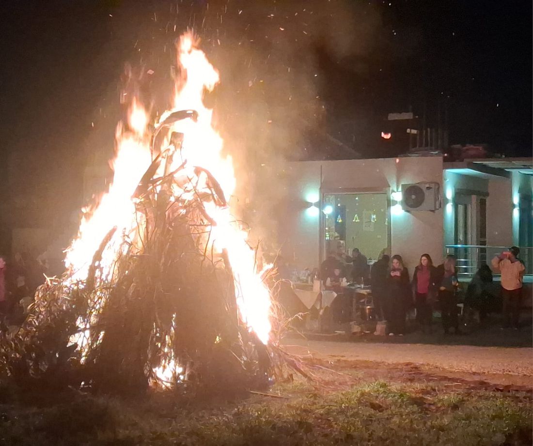 Όπως προστάζει η παράδοση, γύρω από κάθε φωτιά οι παρευρισκόμενοι μοιράζονται γλυκά και παραδοσιακά εδέσματα, όπως φασολάδα, πιπεριές και άλλα τοπικά φαγητά, συνοδευόμενα από άφθονο κρασί. Η ατμόσφαιρα γεμίζει από τους ήχους της παραδοσιακής μουσικής της Φλώρινας, ενώ ο χορός και το γλέντι κρατούν μέχρι αργά, μεταφέροντας το πνεύμα των Χριστουγέννων και τη ζεστασιά της πατρίδας, ακόμα και μακριά από αυτήν.
