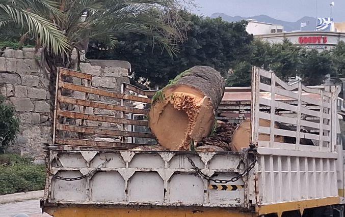 Δυστυχώς, ακόμα ένας φοίνικας στο λιμάνι Κω (στη λεωφόρο Φοινίκων), αρρώστησε από το σκαθάρι και σήμερα απομακρύνθηκε από συνεργεία το Δήμου.