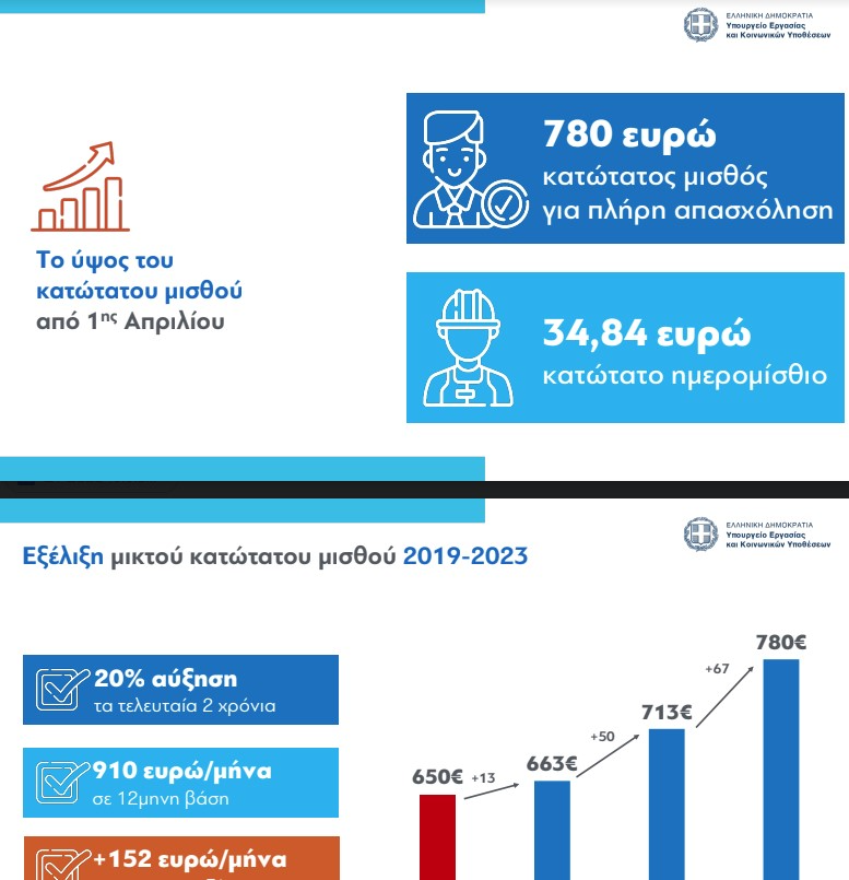 «Δεν αυξήθηκε μόνο ο κατώτατος μισθός τα προηγούμενα χρόνια αλλά και ο μέσος μισθός. Σύμφωνα με το ΕΡΓΑΝΗ οι μέσες αμοιβές σε σχέση με το 2019 έχουν αυξηθεί κατά 12,1%, πιο πολύ δηλαδή και από τον πληθωρισμό» επισήμανε ο υπουργός.