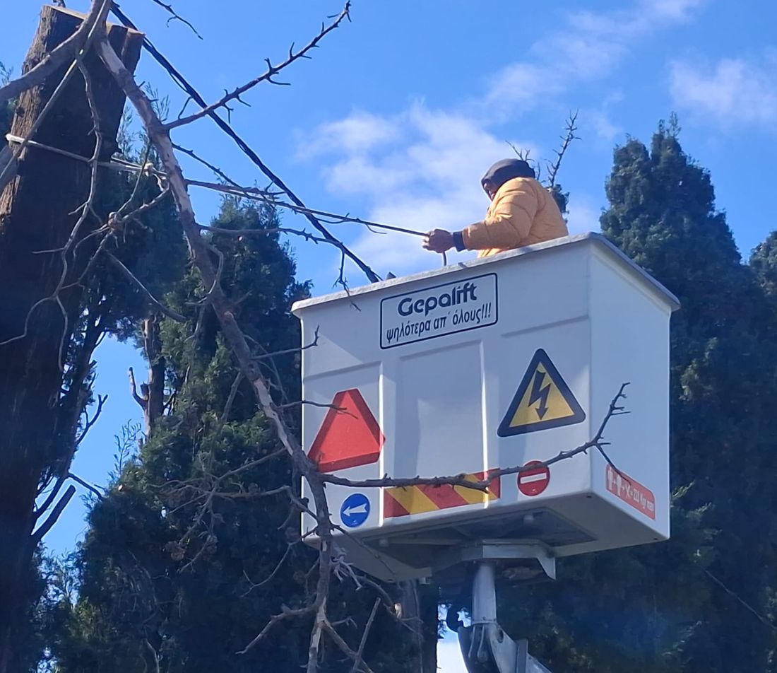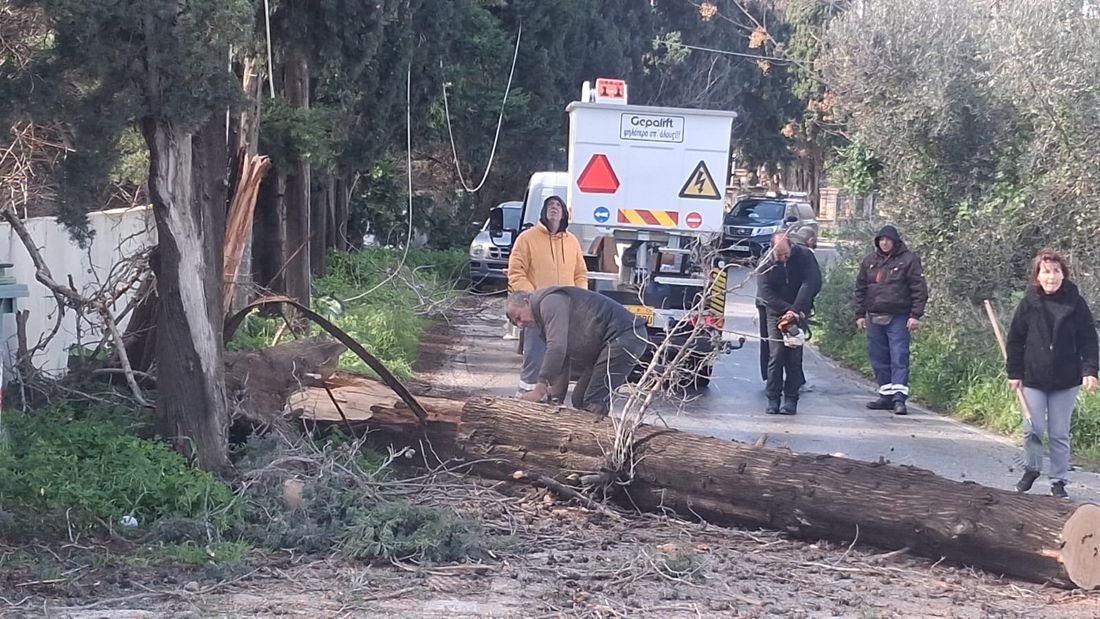 Σε ετοιμότητα είναι τα συνεργεία του Δήμα και το Τμήμα Πρασίνου για τις κοπές δέντρων που κλήθηκαν σε πολλές περιπτώσεις εξ αιτίας της κακοκαιρίας.