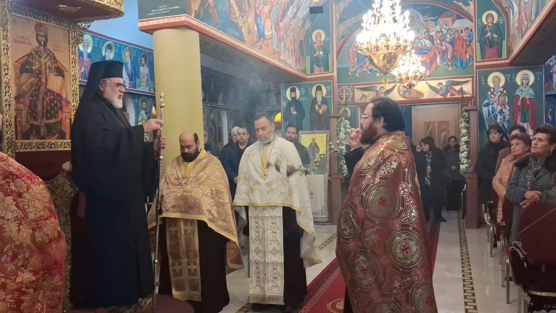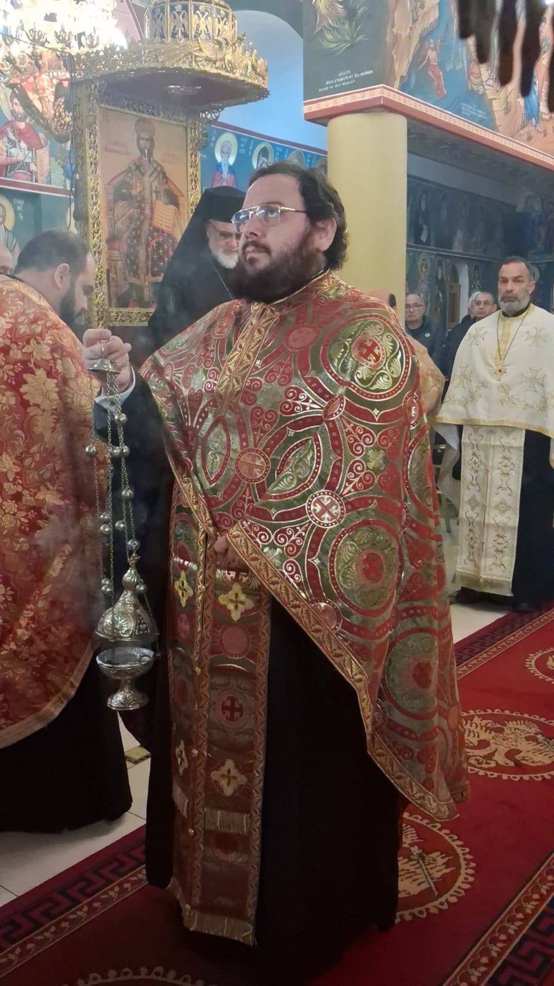 Τον Σεβασμιώτατο πλαισίωναν ο Ιερατ. Προϊστάμενος του ΙΝ Θείας Αναλήψεως Ζηπαρίου π. Ιωάννης Κουτάντος, ο Αρχιμανδρίτης π. Χαράλαμπος-Ιουστιανιανός Χιρμπάκης από την Νίσυρο, ο Αρχιμανδρίτης π. Διονύσιος Παριάρος, ο π. Ιωάννης Σταυρόπουλος,ο π. Ευτύχιος Παπαγεωργίου και ο π. Περικλής Πουλέντσης.