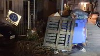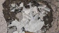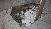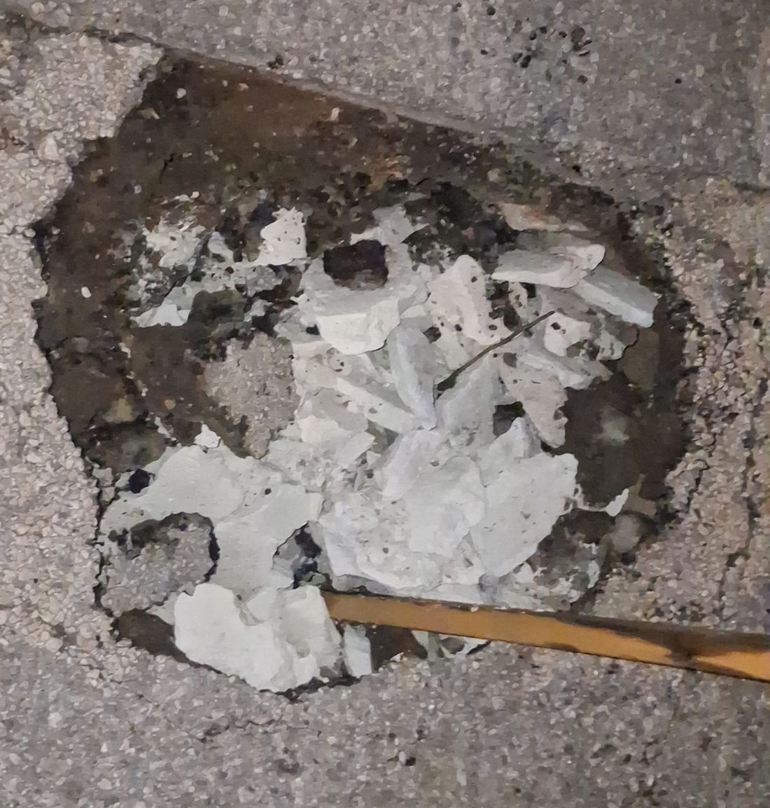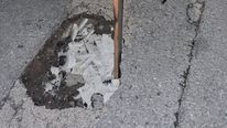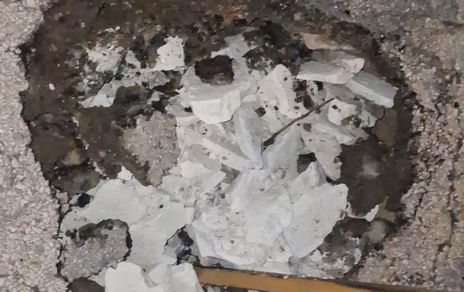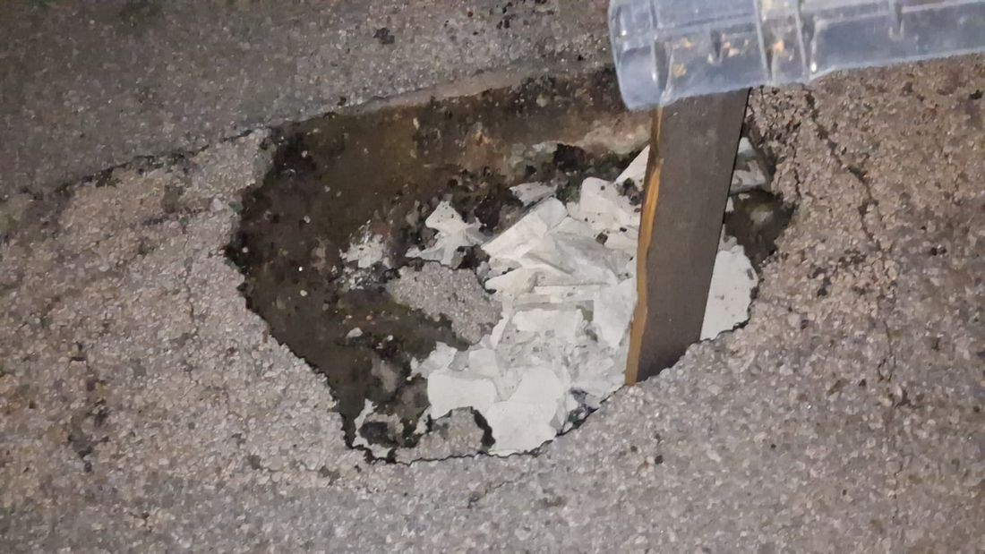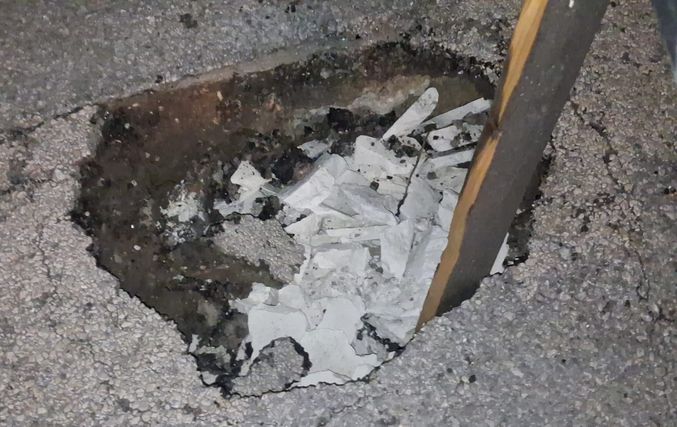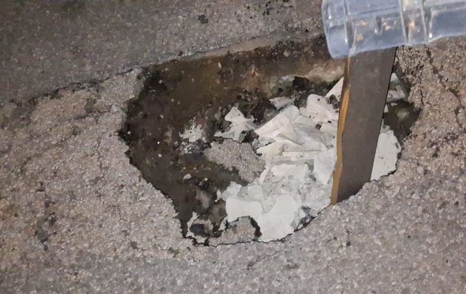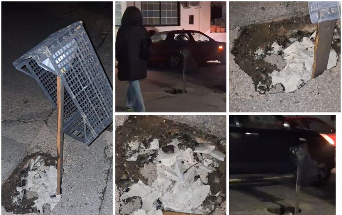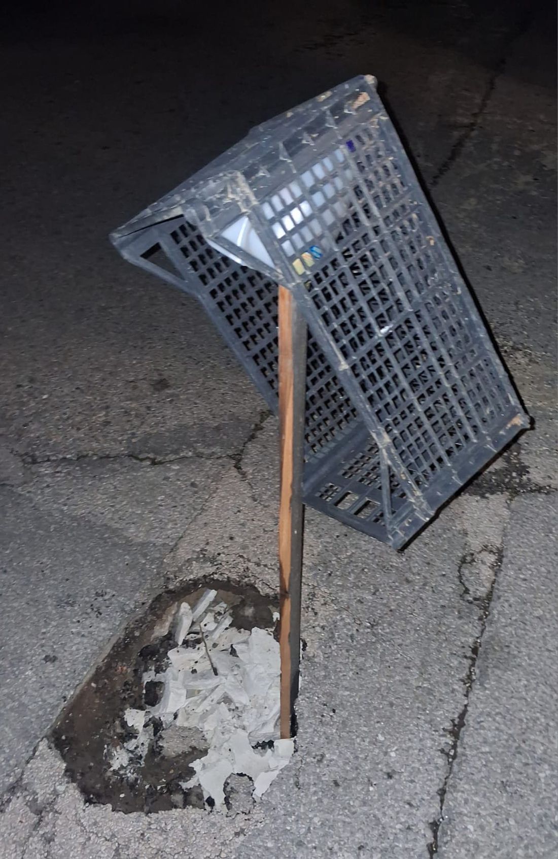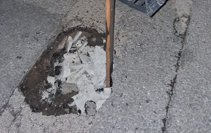 Μπροστά στον κίνδυνο πρόκλησης ατυχήματος, κάτοικοι της περιοχής προχώρησαν σε μια αυτοσχέδια λύση, τοποθετώντας ένα τελάρο μέσα στη λακκούβα, ώστε να γίνεται αντιληπτή από όσους περνούν και να μπορούν να την αποφεύγουν εγκαίρως.