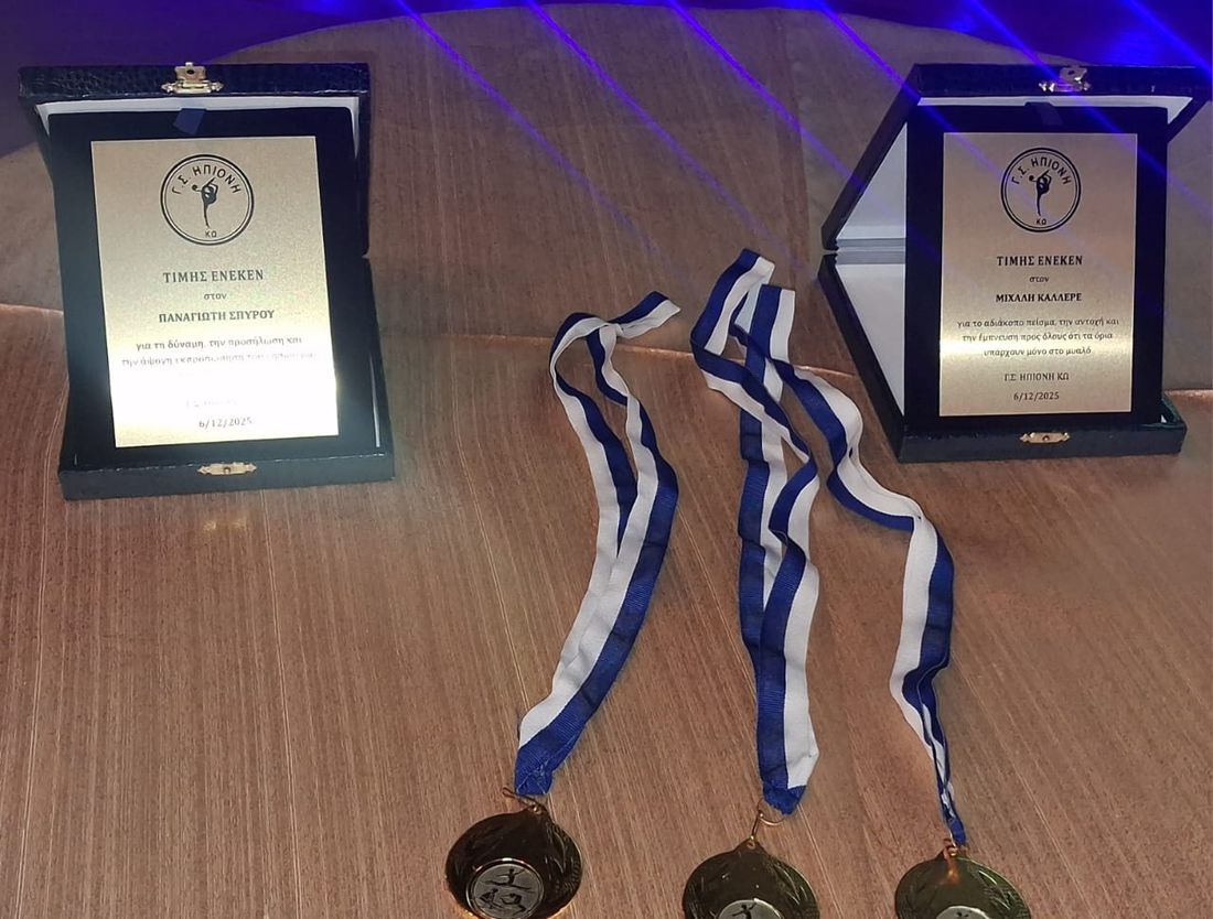 Ο Σύλλογος στην εκδήλωση, βράβευσε δύο αθλητές, οι οποίοι αποτελούν πρότυπο για την νέα γενιά. Πρόκειται για τους Μιχάλη Καλλερέ και Παναγιώτη Σπύρου, ενώ παράλληλα βράβευσε και τρεις αθλήτριες του συλλόγου για τις επιτυχίες και την αγωνιστική τους πρόοδο την Νικολέτα Γιαλλούση την Ίρις Ρήγα και την Βικτώρια Ραμάι.