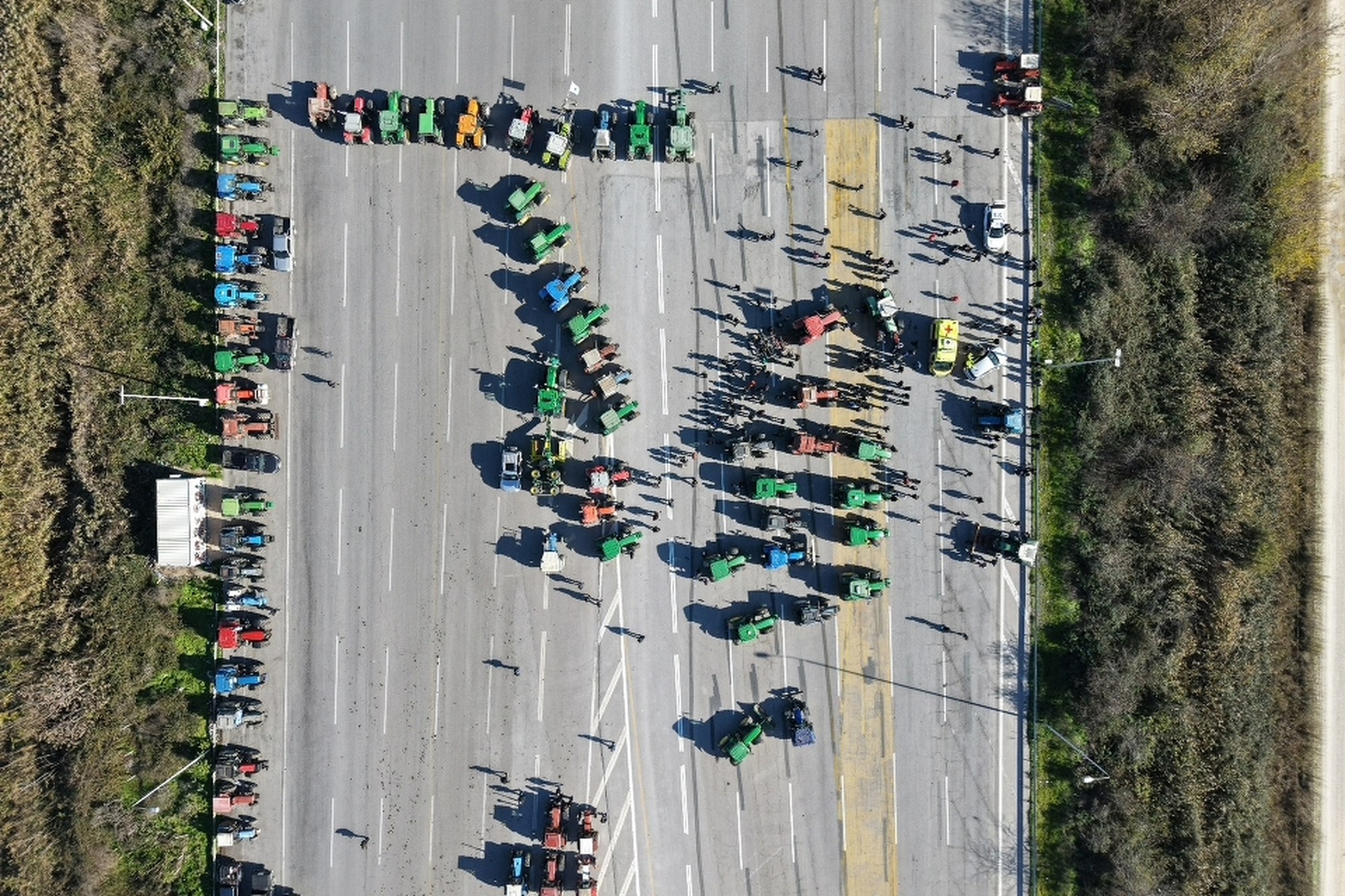 Σύμφωνα με τους αγρότες της Θεσσαλίας, στα δύο εν λόγω μπλόκα βρίσκονται περισσότερα από 3.000 τρακτέρ.
