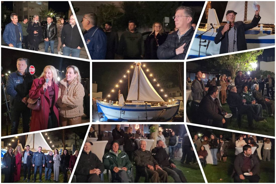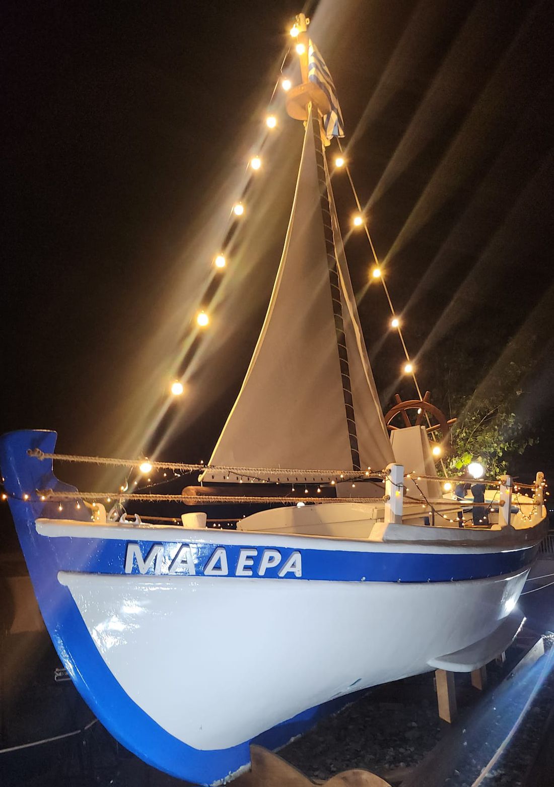 Με μια όμορφη και ζεστή εκδήλωση πραγματοποιήθηκε το απόγευμα της Κυριακής, η φωταγώγηση του ανακατασκευασμένου παραδοσιακού τρεχαντηριού “ΜΑΔΕΡΑ”, το οποίο τοποθετήθηκε συμβολικά στην περιοχή της Καζέρμα (στη συμβολή των οδών Αρτεμισίας & Παπαθεοφάνους).