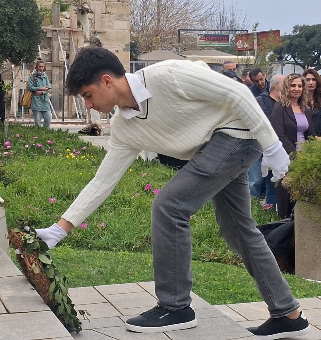 Με την ολοκλήρωση των σχολικών εορτών, ακολούθησε, όπως κάθε χρόνο, η κατάθεση στεφάνων από μαθητές, εκπαιδευτικούς και εκπροσώπους των τοπικών αρχών και φορέων, ως ελάχιστος φόρος τιμής στους αγωνιστές που με την προσφορά και τη θυσία τους συνέβαλαν στην απελευθέρωση.