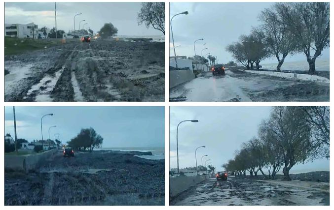 Προβλήματα στον παραλιακό δρόμο στο Τιγκάκι – Γέμισε φύκια και άμμο