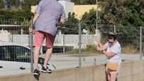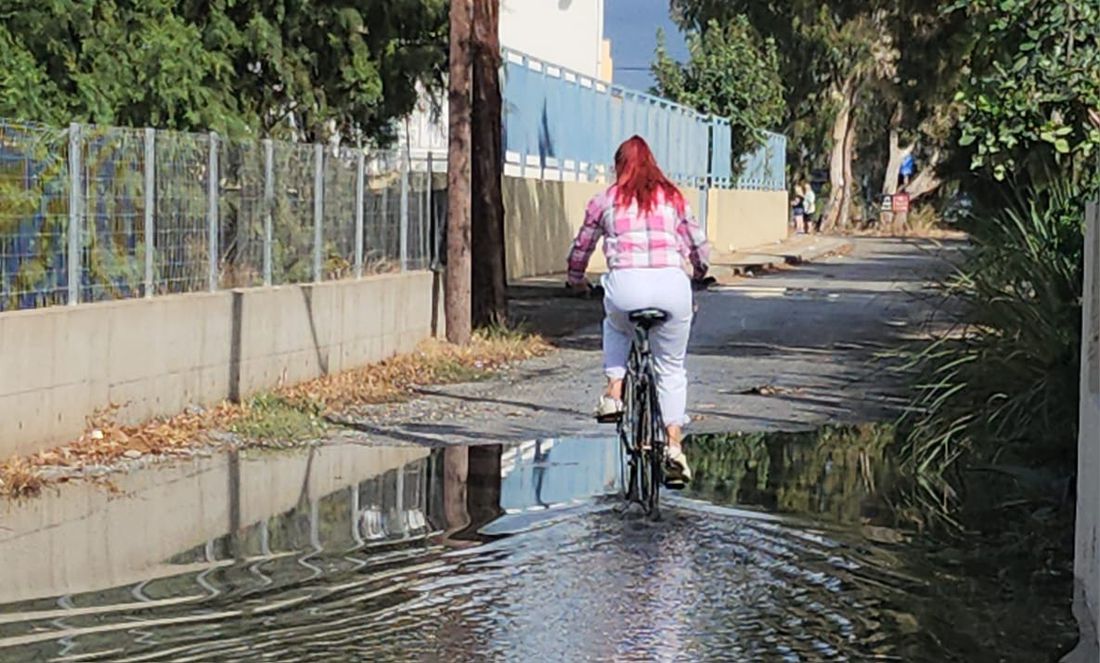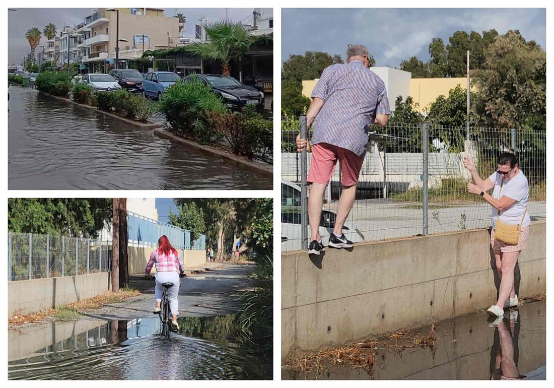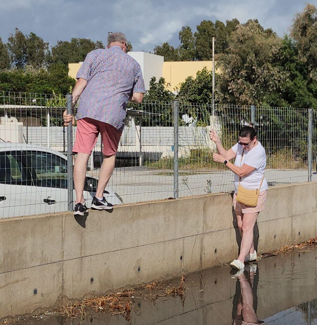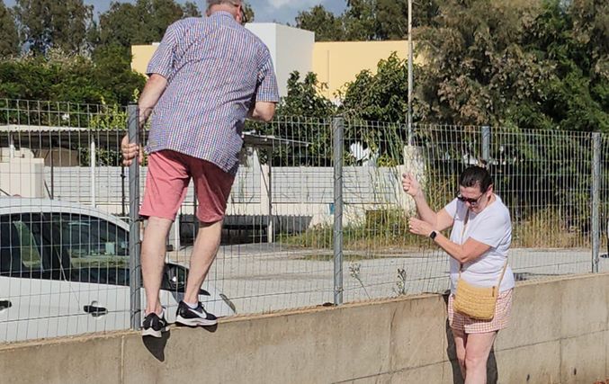 Στο χώρο του Γυμνασίου στη Λάμπη, βρήκαμε τουρίστες, οι οποίοι για να διασχίσουν τον δρόμο, αναγκάστηκαν να ανέβουν πάνω στα σύρματα.