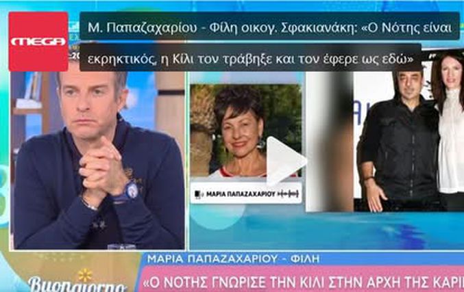 Στην εκπομπή Buongiorno μίλησε η Μαρία Παπαζαχαρίου, που ήταν πολύ καλή φίλη της Κίλι Σφακιανάκη, με αφορμή τον θάνατό της. Η ίδια αποκάλυψε πώς γνωρίστηκαν, ενώ αναφέρθηκε και στη σχέση της 62χρονης με τον Νότη Σφακιανάκη.