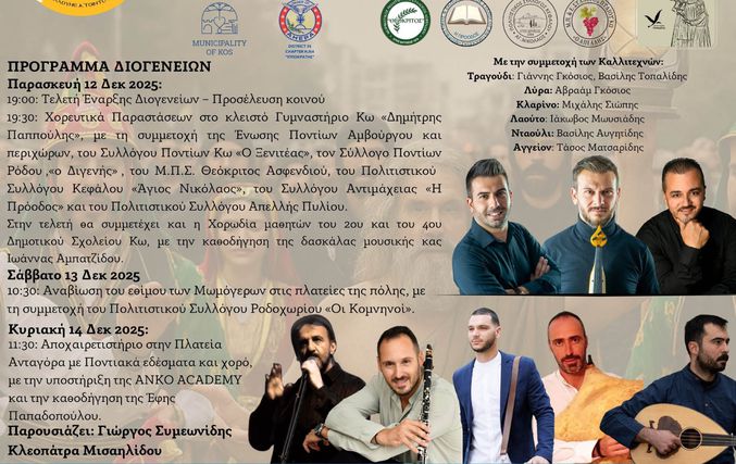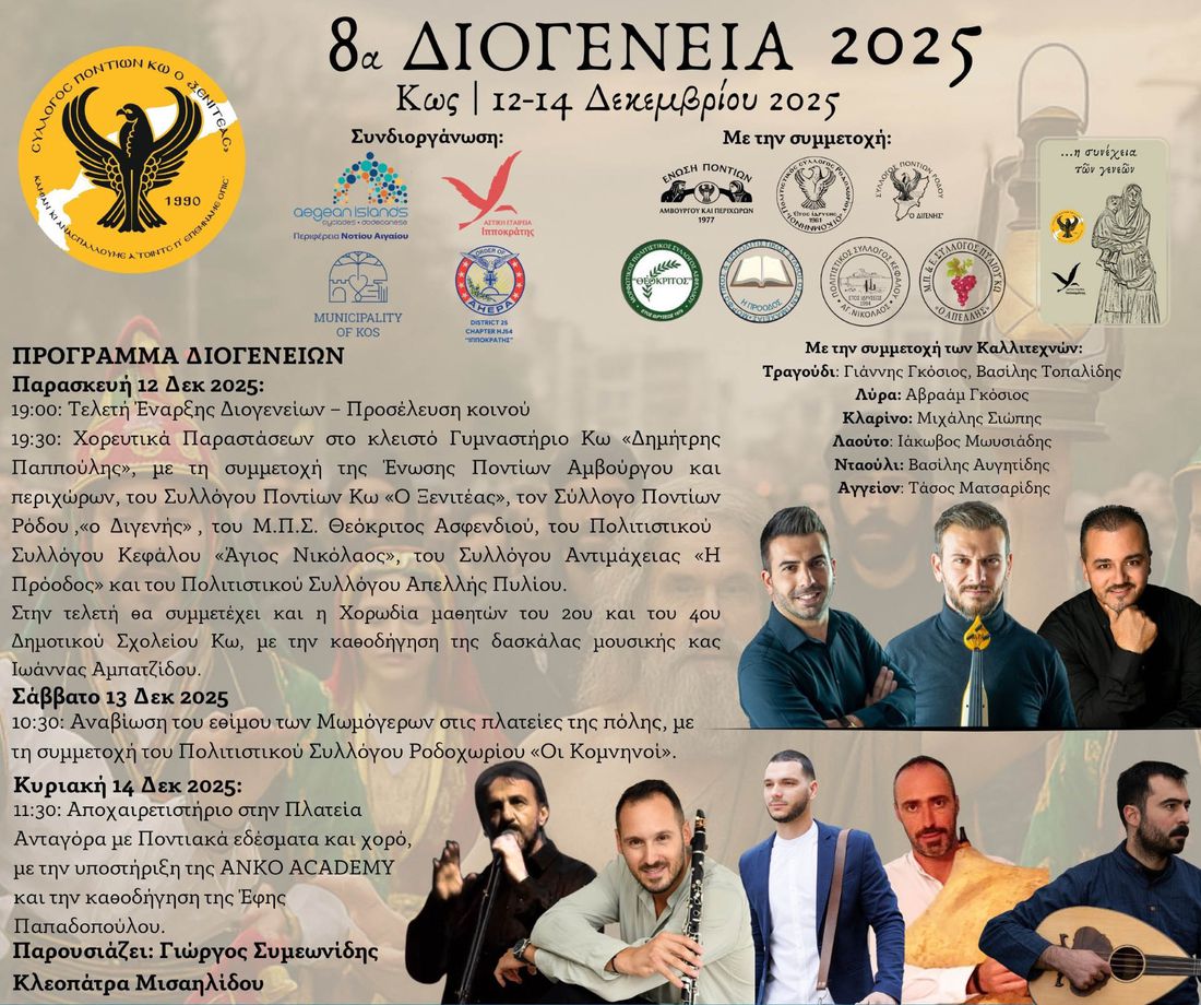 12/12 ξεκινούν τα «8α Διογένεια» από τον Σύλλογο Ποντίων Κω