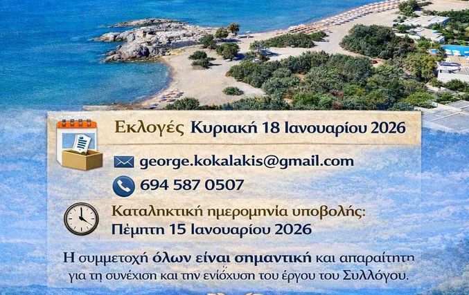 Ο Σύλλογος Κεφάλου «Αρωγή» καλεί όσους επιθυμούν να δηλώσουν υποψηφιότητα για τις εκλογές που θα πραγματοποιηθούν την Κυριακή 18 Ιανουαρίου 2026.
