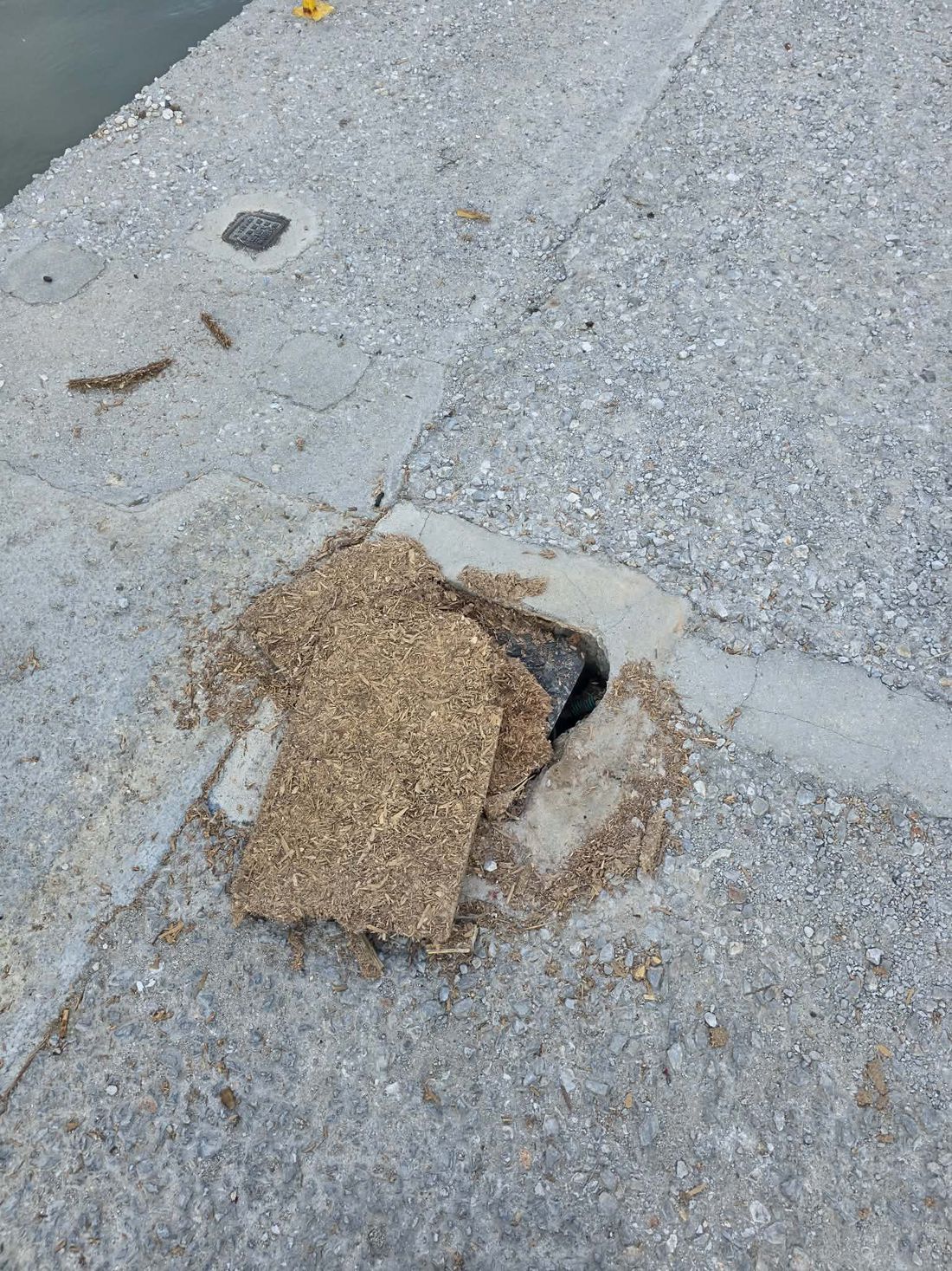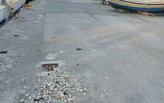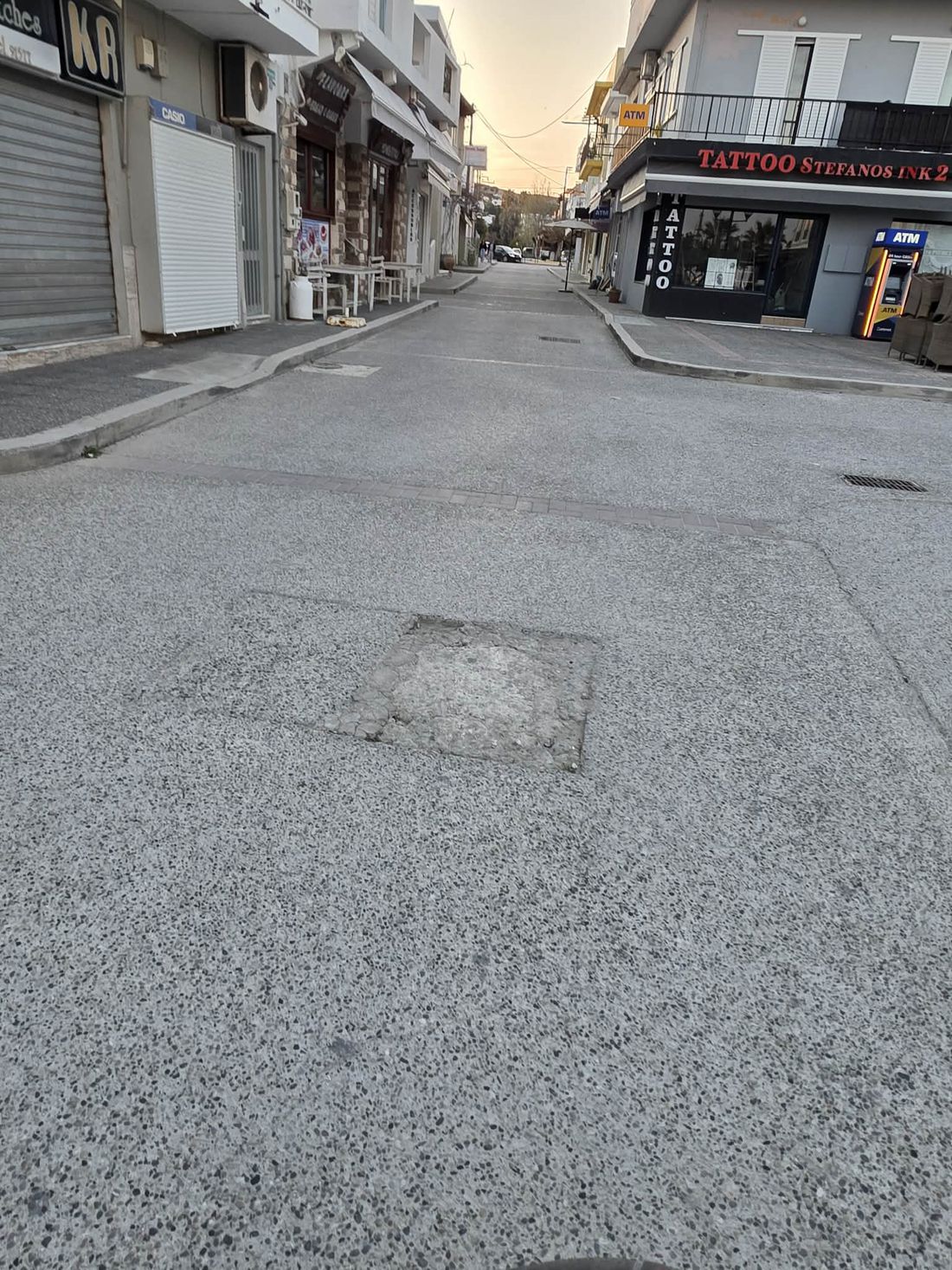 Δεν ξέρω ποιος εχει κανει λάθος αλλα όλη η περιοχή εδω μοιάζει σαν να μην προσπάθησαν να το φέρουν στα ίσια ποτε ! Το καπάκι εξέχει τουλάχιστον 2.5 με 3 πόντους στην μια πλευρά με αποτέλεσμα να αποτελεί κίνδυνο για όσους περπατάνε στο λιμάνι και δεν κοιτανε μόνιμα κατω !