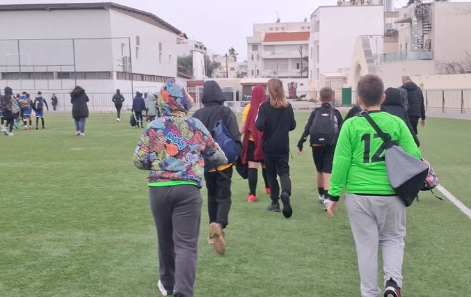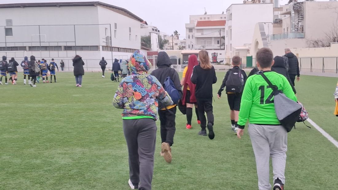Οι μαθητές κατέβηκαν στο γήπεδο, όμως δυστυχώς ο καιρός είχε άλλα σχέδια, καθώς εκείνη την ώρα έβρεξε και έτσι τα παιδιά μεταφέρθηκαν στο κλειστό γήπεδο μπάσκετ για να προφυλαχτούν από το βροχή και ανάλογα τις καιρικές συνθήκες θα προγραμματιστούν εκ νέου οι αγώνες.