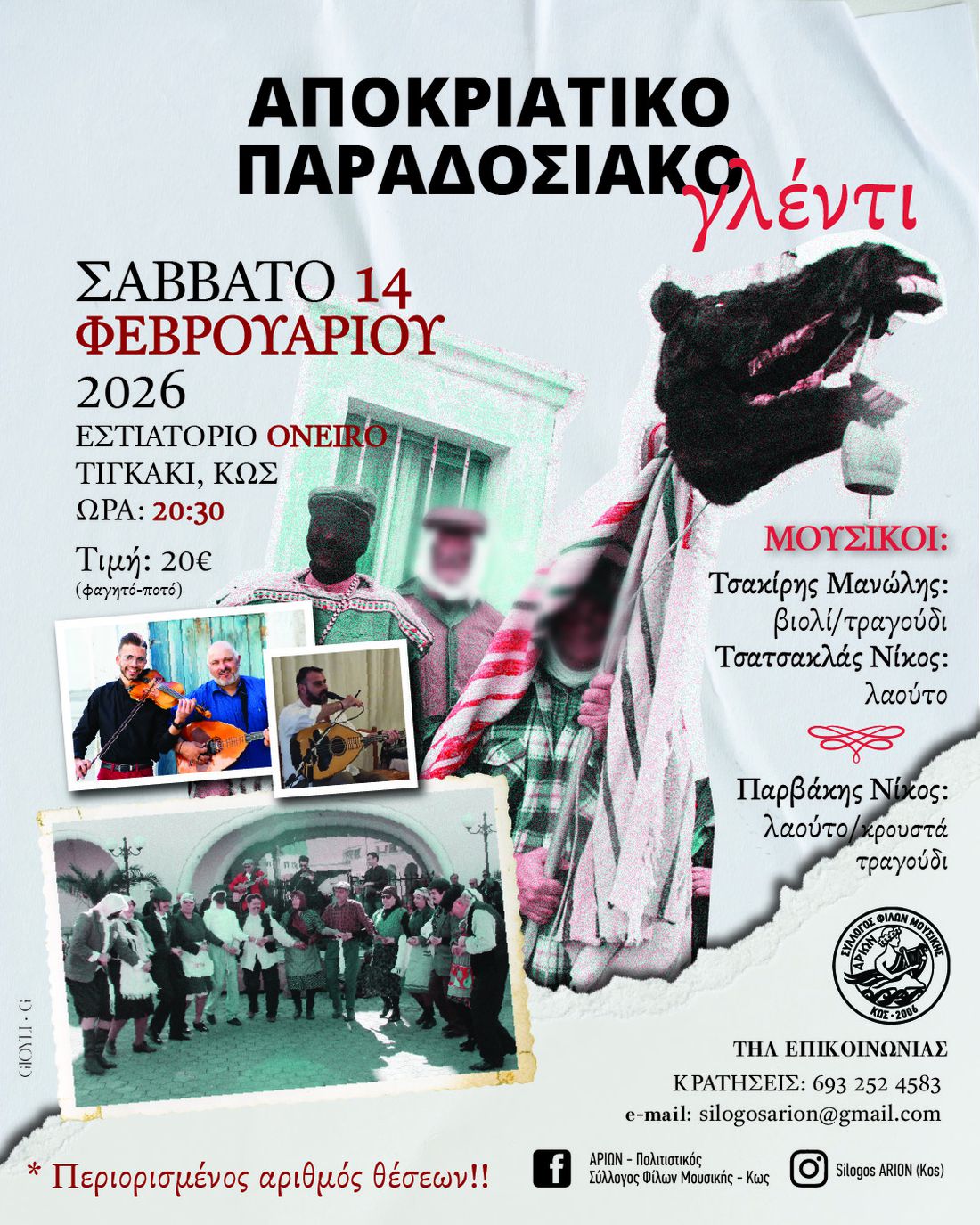 "Αρίων": Αποκριάτικο γλέντι στις 14/2