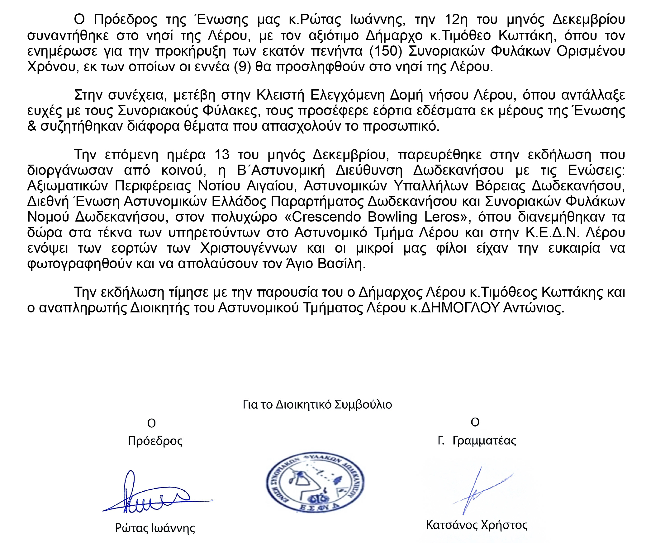 Διήμερο δράσεων της Ένωσης Συνοριακών Φυλάκων Δωδ/σου