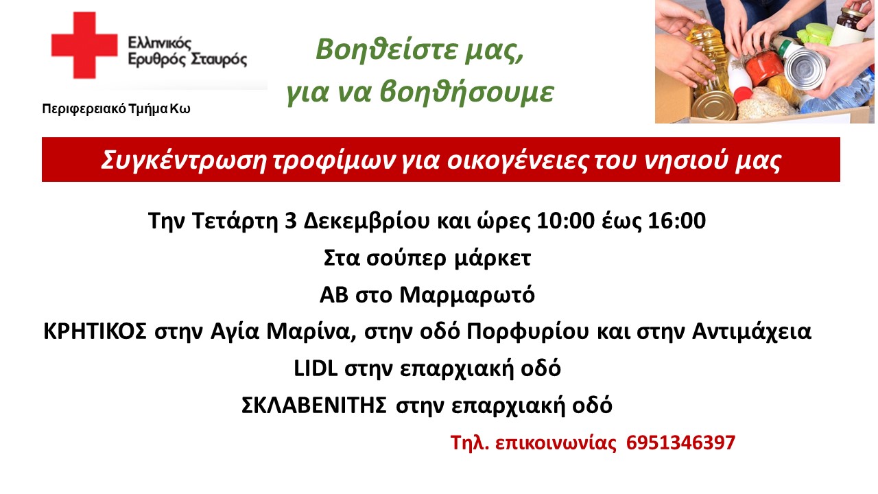 Eρυθρός Σταυρός Κω: Νέα ημερομηνία για την συγκέντρωση τροφίμων από τον Ε.Ε.Σ.