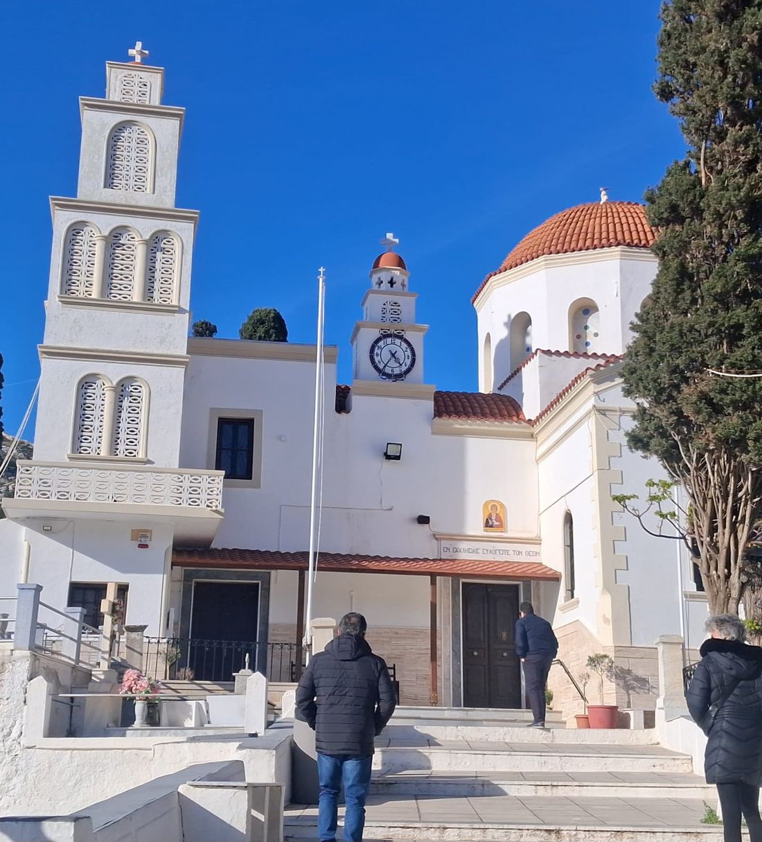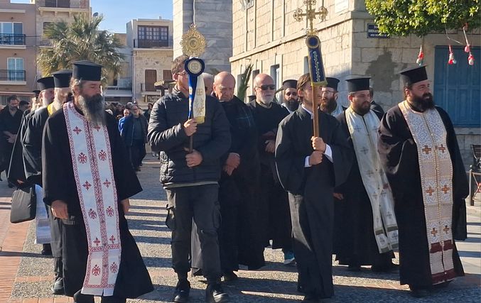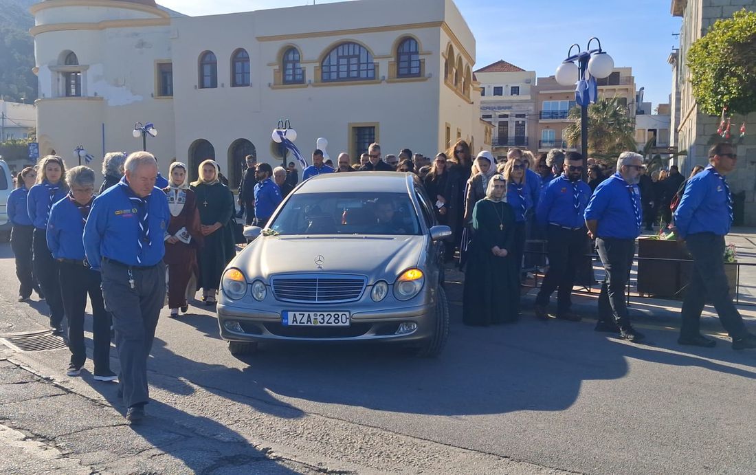 Από νωρίς το πρωί, πλήθος κόσμου κατέκλυσε τον Μητροπολιτικό Ιερό Ναό του Σωτήρος Χριστού στην Πόθια, όπου στις 09:45 η σορός τέθηκε σε λαϊκό προσκύνημα. Άνθρωποι κάθε ηλικίας σχημάτισαν μεγάλες ουρές, επιθυμώντας να αποτίσουν φόρο τιμής στον άνθρωπο που υπήρξε σύμβολο προσφοράς και αλληλεγγύης για την τοπική κοινωνία. Το φέρετρο, σκεπασμένο με την ελληνική σημαία και την καλυμνιακή, αποτέλεσε σημείο συγκίνησης και υπερηφάνειας.