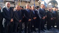 Δεκάδες στεφάνια κατέκλυσαν τον χώρο, τόσο από ανώνυμους πολίτες όσο και από επώνυμους, μεταξύ των οποίων διακρίναμε και εκείνα των γνωστών καλλιτεχνών Αντώνη Ρέμου και Πάνου Κιάμου.