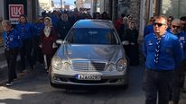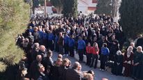 Μετά το πέρας της εξοδίου ακολουθίας, σχηματίστηκε πομπή προς το Κοιμητήριο του Αγίου Μάμμα