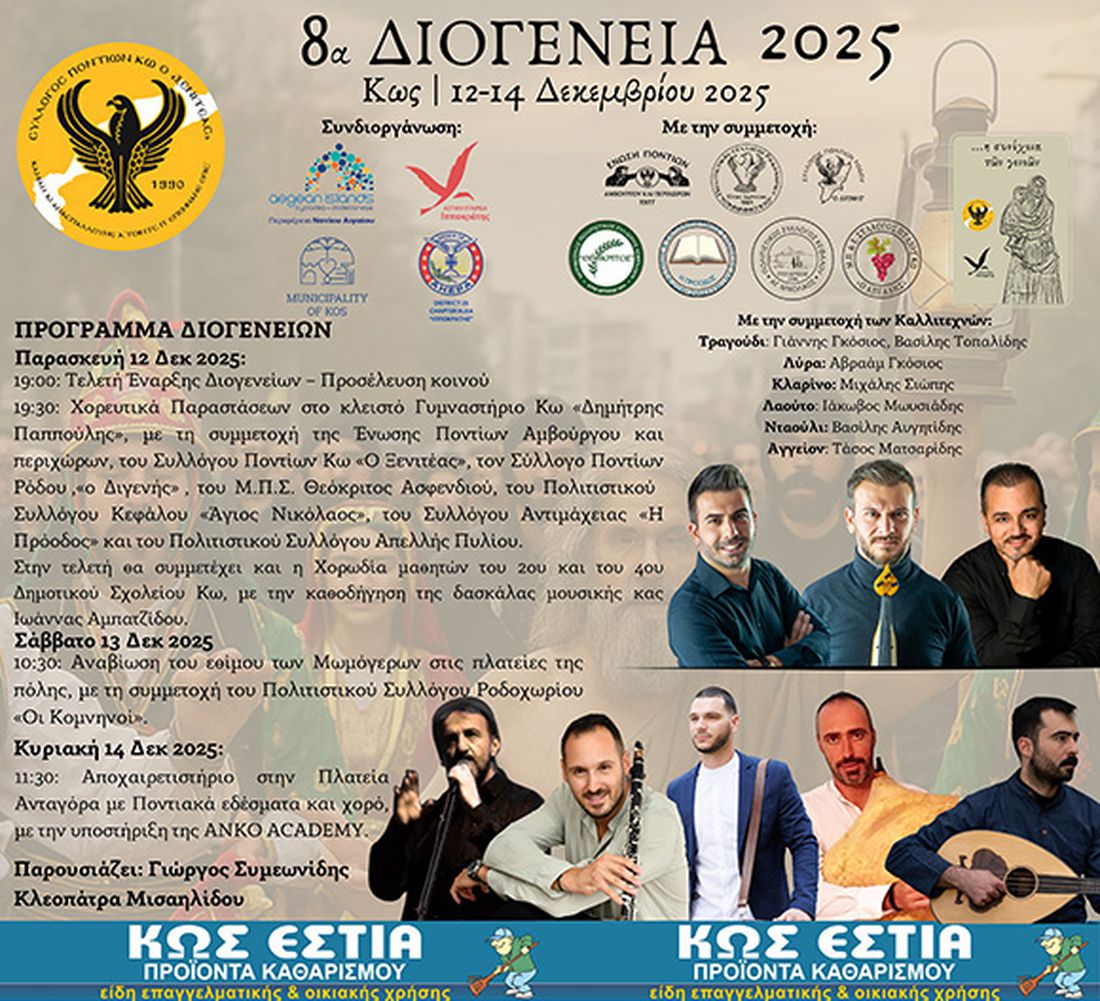 Η Κως ετοιμάζεται να υποδεχθεί τα 8α Διογένεια (2025), μια διοργάνωση που φέτος συμπληρώνει 21 χρόνια πορείας και τιμής.