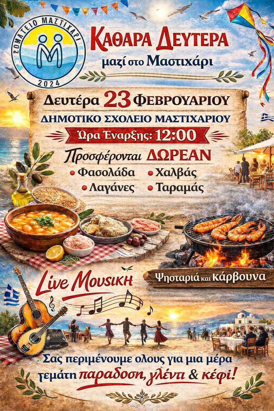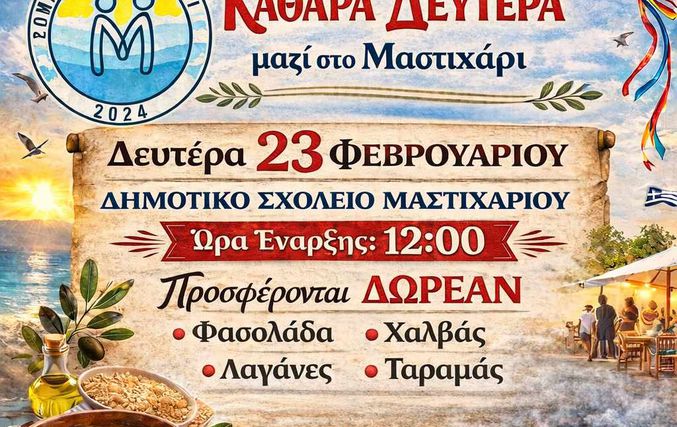 Ελάτε όλοι μαζί να πετάξουμε τον χαρταετό, να αναβιώσουμε ομαδικά παιχνίδια,να διασκεδάσουμε και να κρατήσουμε ζωντανές τις παραδόσεις του Μαστιχαρίου!