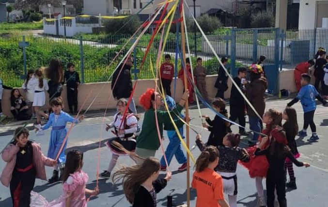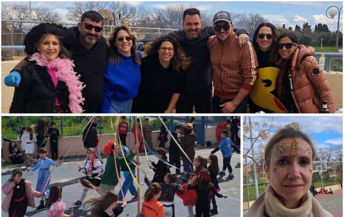 Οι σχολικές αίθουσες και η αυλή πλημμύρισαν από χρώματα, ευφάνταστες στολές και παιδικά γέλια. Μικροί και μεγάλοι έγιναν μια μεγάλη παρέα, αφήνοντας για λίγο στην άκρη τα μαθήματα και δίνοντας χώρο στη χαρά, το παιχνίδι και τη δημιουργικότητα.