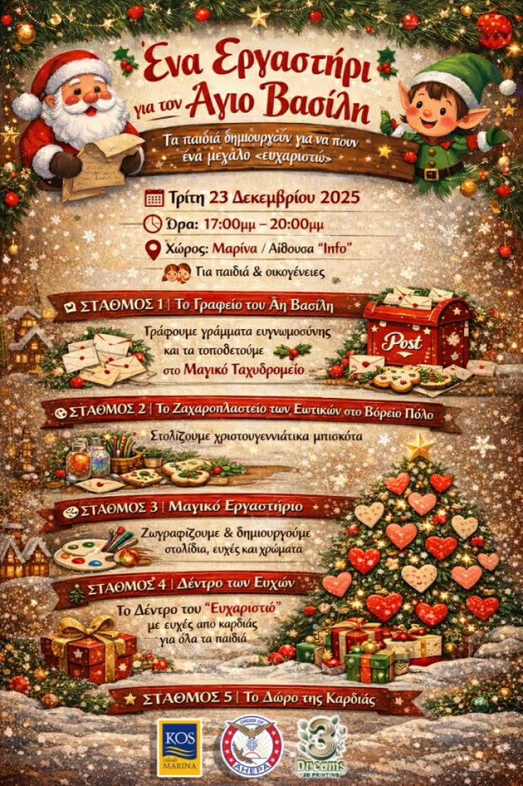 Πλούσιες δραστηριότητες στο εργαστήριο για τον Άγιο Βασίλη στη Μαρίνα Κω