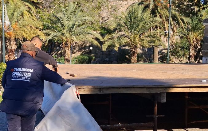 Πυρετώδεις είναι οι εργασίες για το άναμμα του Χριστουγεννιάτικου δέντρου στην πόλη (σήμερα στο λιμάνι, ώρα 19:00).